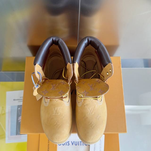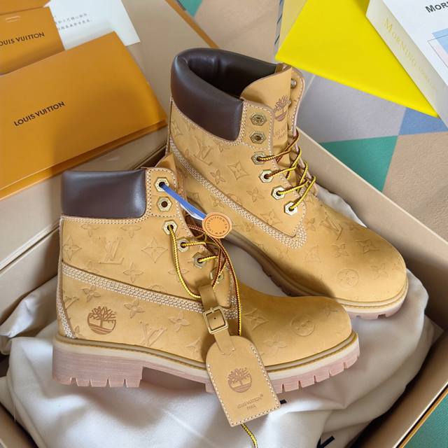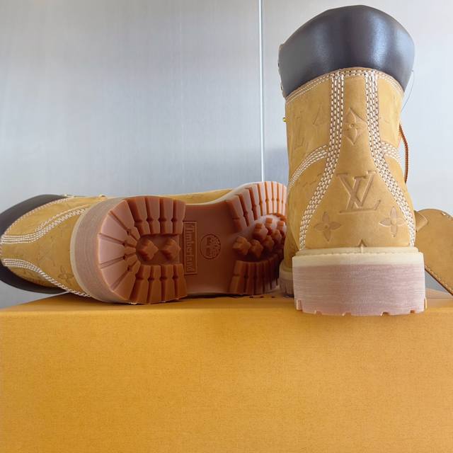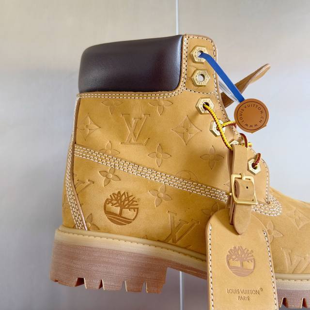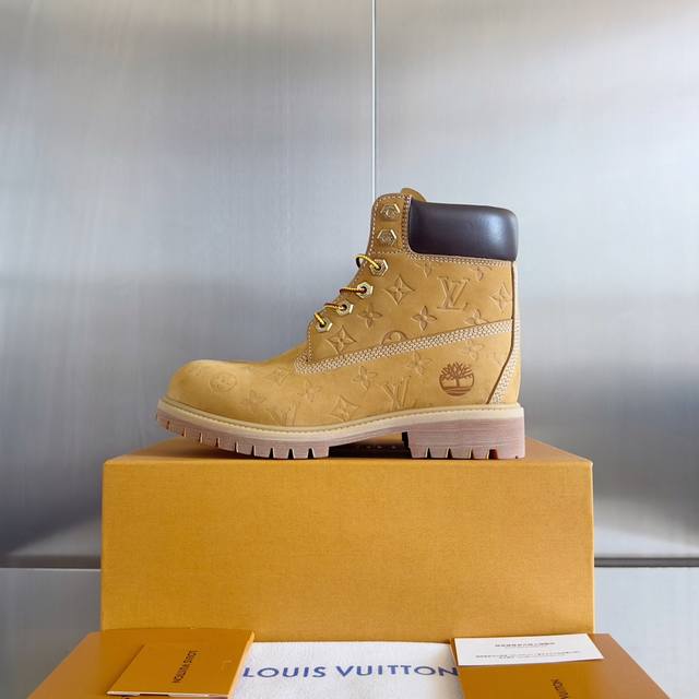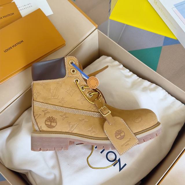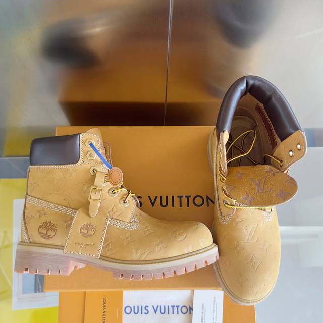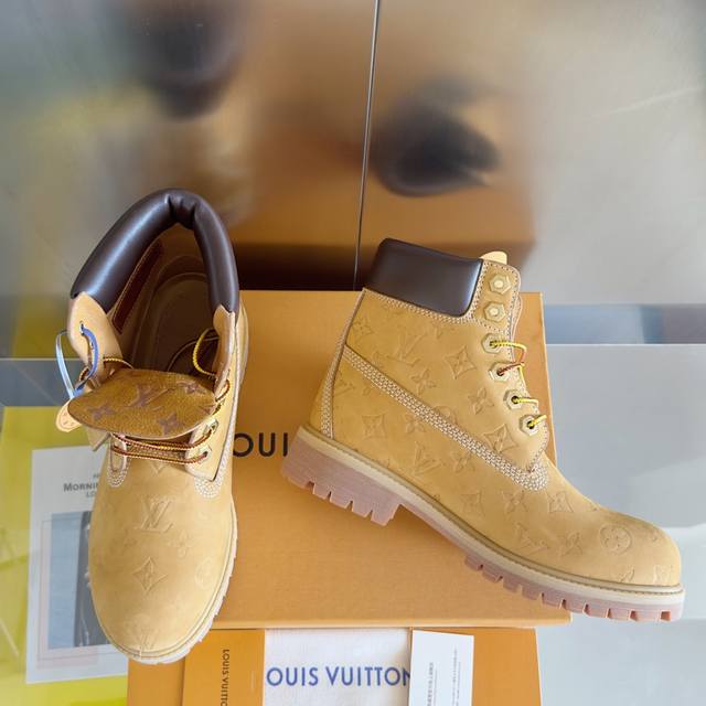 Lv X Timberland 添柏岚 联名款 老花 压花 大黄靴 及踝靴 短靴
