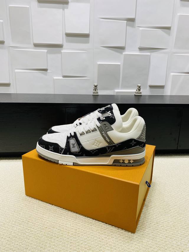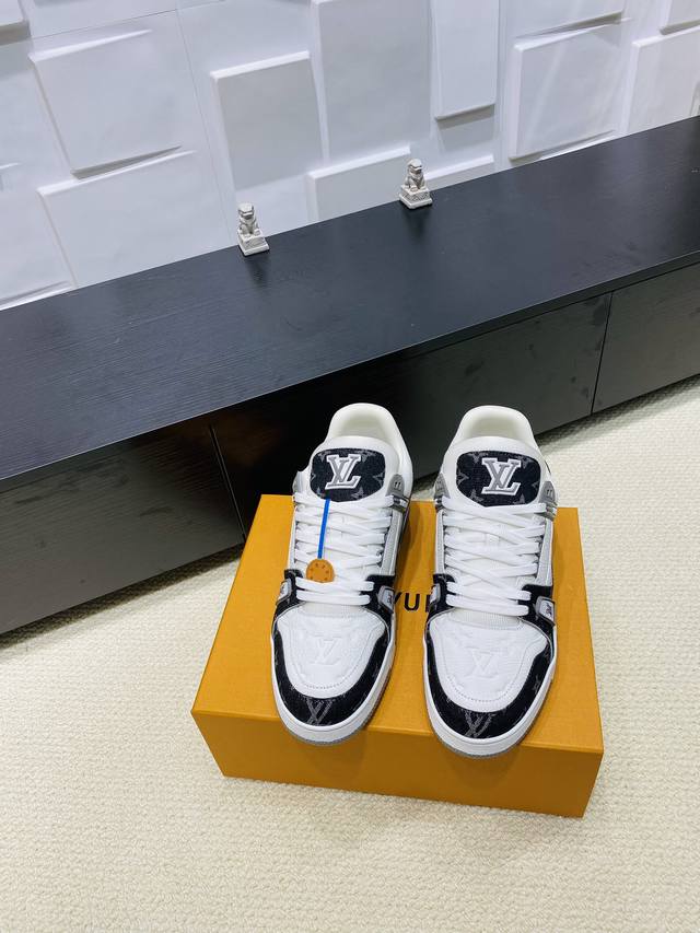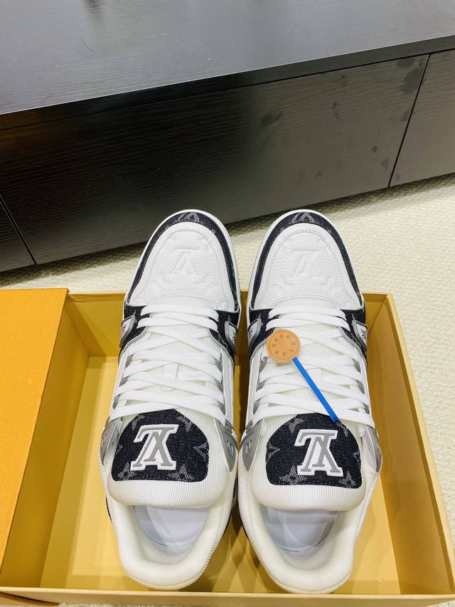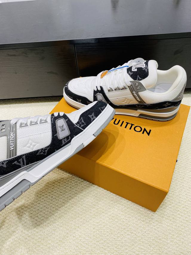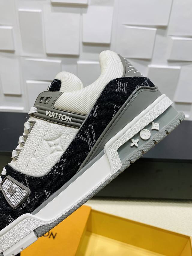 原版购入开发 路易威登 X Tyler 合作系列推出 Lv Trainer 运动鞋,延续 Virgil Abloh 基于复古篮球鞋创作的经典设计。牛皮革鞋面融入 Craggy Monogram 压纹和路易威登标识,展现 Tyler 对 Monogram 图案和品牌元素的趣味重构