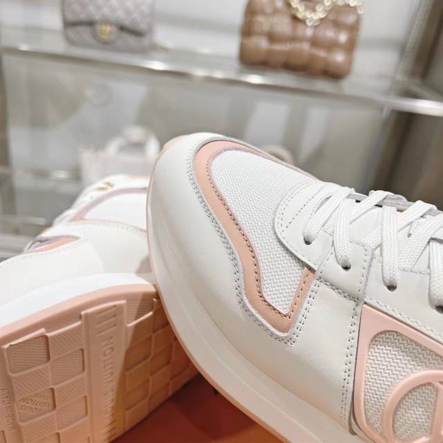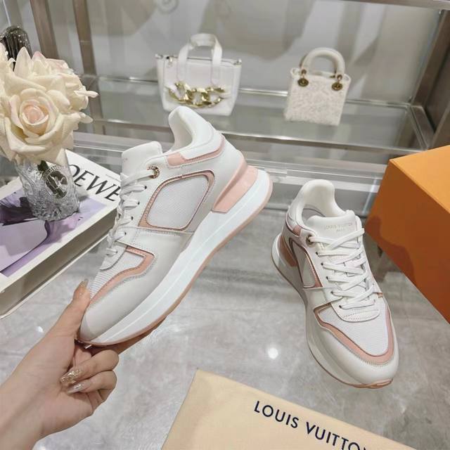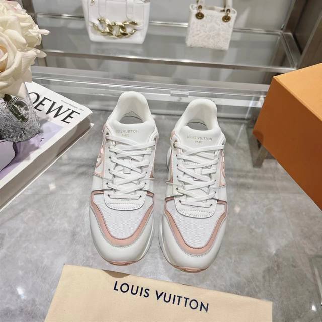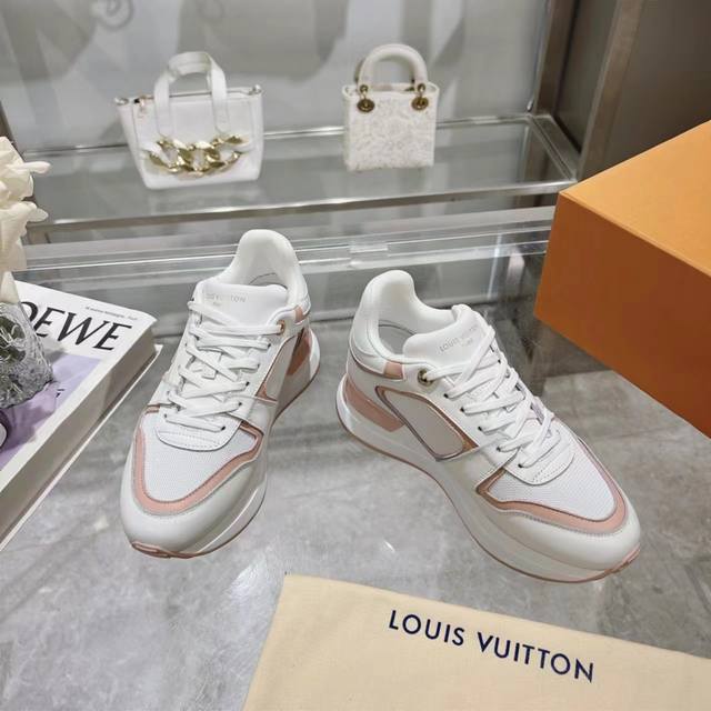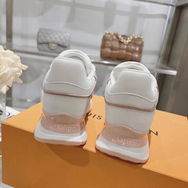 高版本louis Vuitton路易威登官网同步2024秋冬情侣款火爆上市,这款neo Run Away运动鞋的灵感源自跑鞋,将lv标志性的必备鞋款融入潮流,该版本原版1:1复制,采用双色小牛皮制成凸显其简陋的线条和特有的坡跟外底,主要细节包括侧面的lv首字母和背面雕刻的金色鞋跟稳定器加隐藏式鞋垫2Cm
