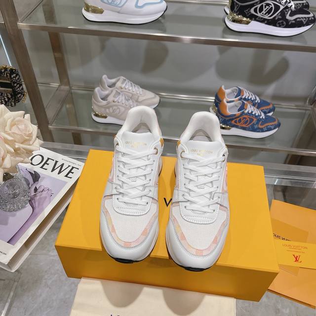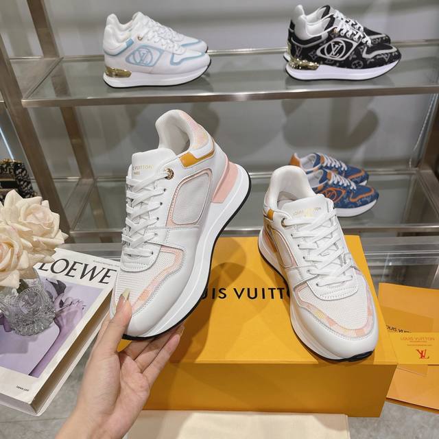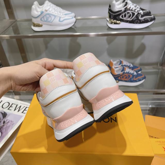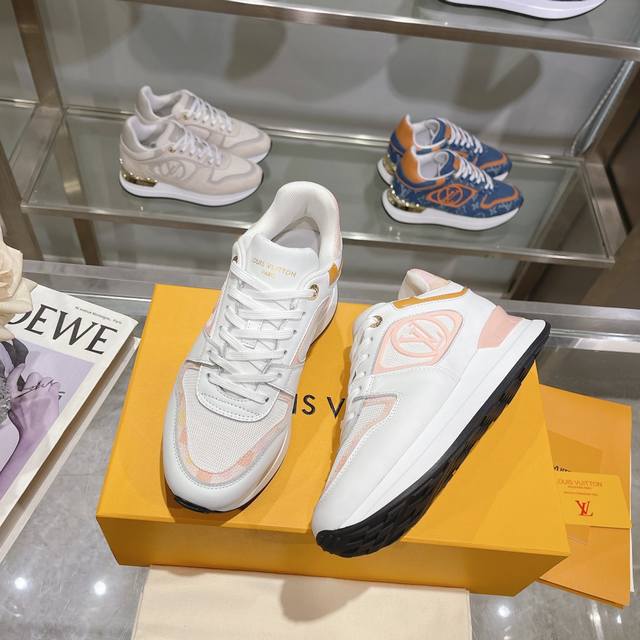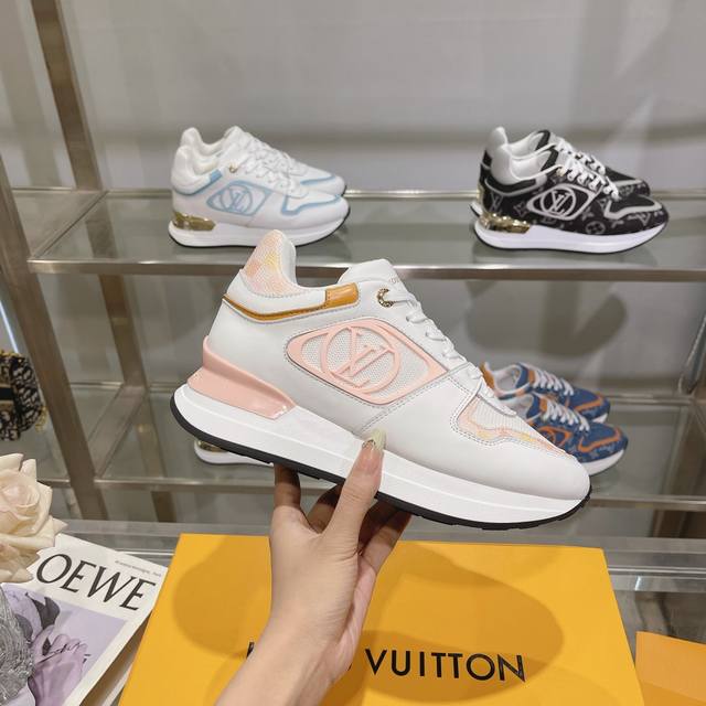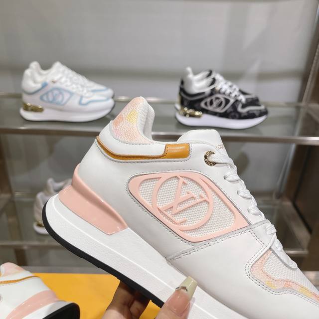 高版本louis Vuitton路易威登官网同步2024秋冬情侣款火爆上市,这款neo Run Away运动鞋的灵感源自跑鞋,将lv标志性的必备鞋款融入潮流,该版本原版1:1复制,采用双色小牛皮制成凸显其简陋的线条和特有的坡跟外底,主要细节包括侧面的lv首字母和背面雕刻的金色鞋跟稳定器加隐藏式鞋垫2Cm