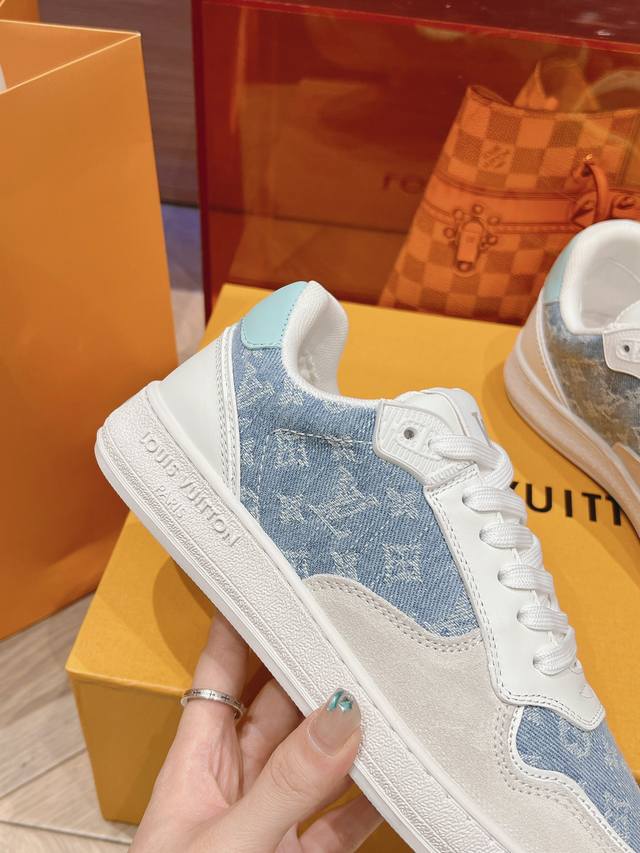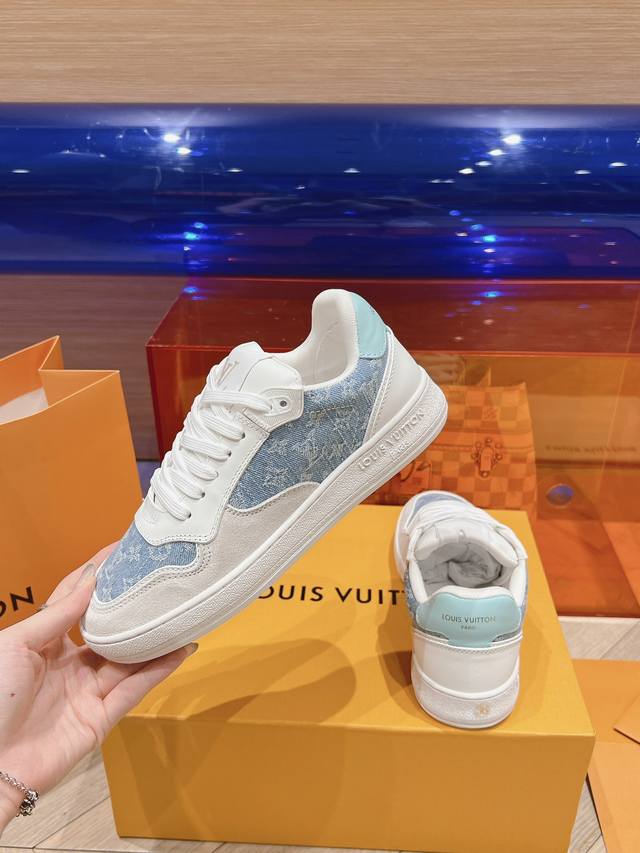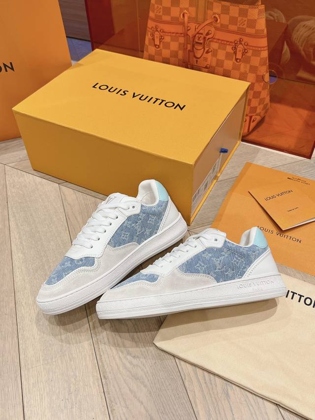 高版 Lv 新款配色 牛仔丹宁运动鞋 情侣款 旅游必备休闲鞋 轻便走路不累 码数:35-45 46定制
