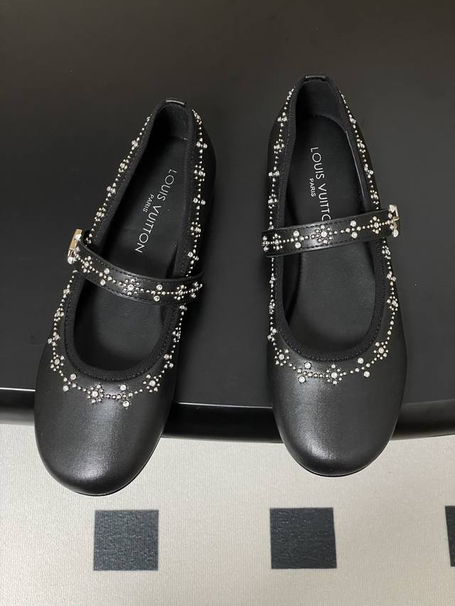 25Ss春季新款Louis Vuitton Lv Romy 平底芭蕾鞋水钻玛丽珍鞋