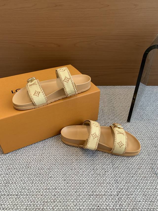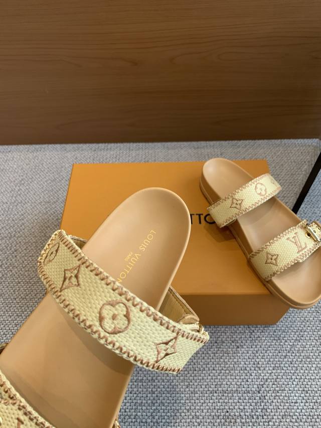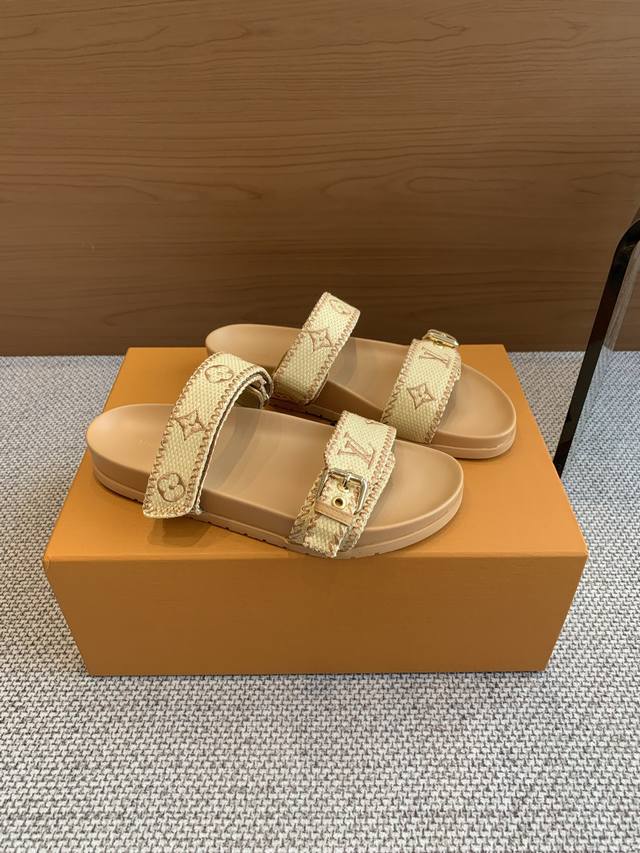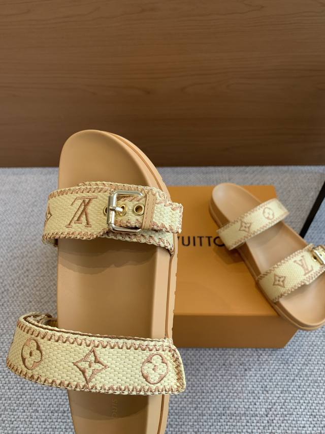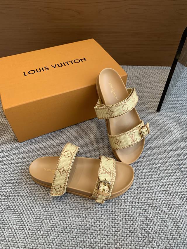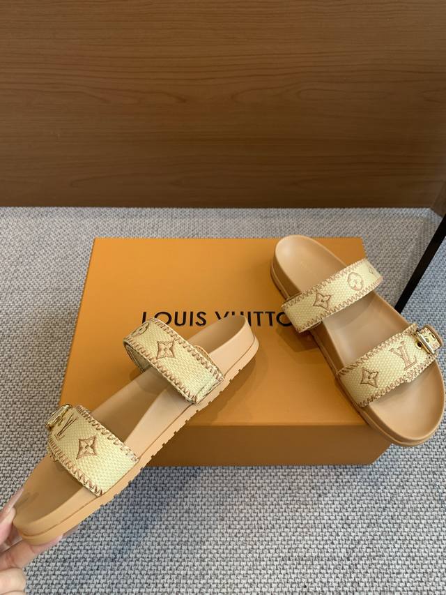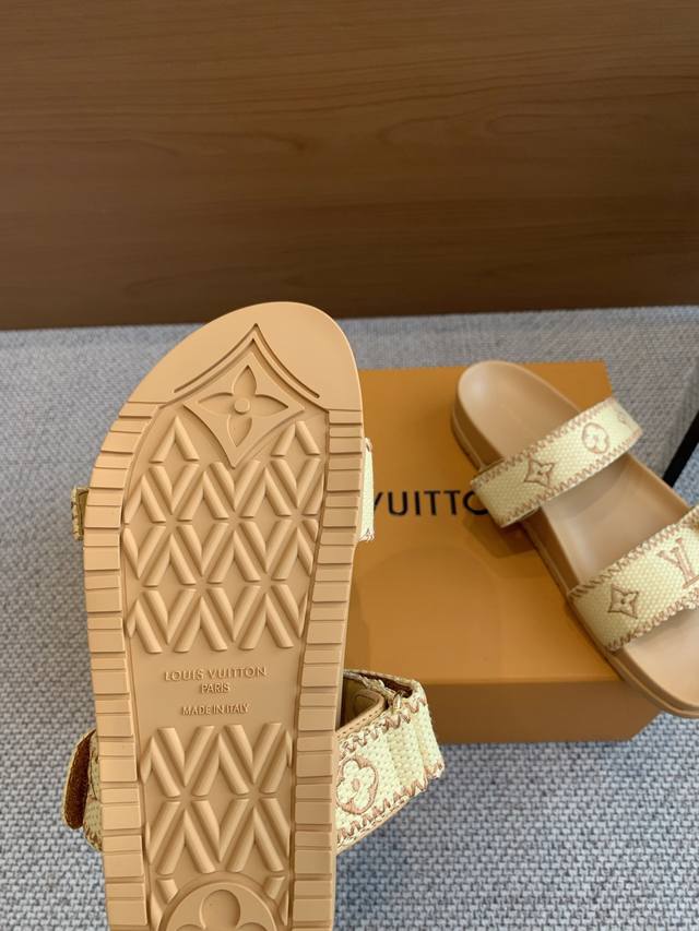 310 Lv 春夏新款编织拖鞋 编织扣子可调松紧的设计 满满的沙滩风情 原版开模Lv金属Logo装饰 既时尚又美观超级百搭 码数:35-46(45 46定做)