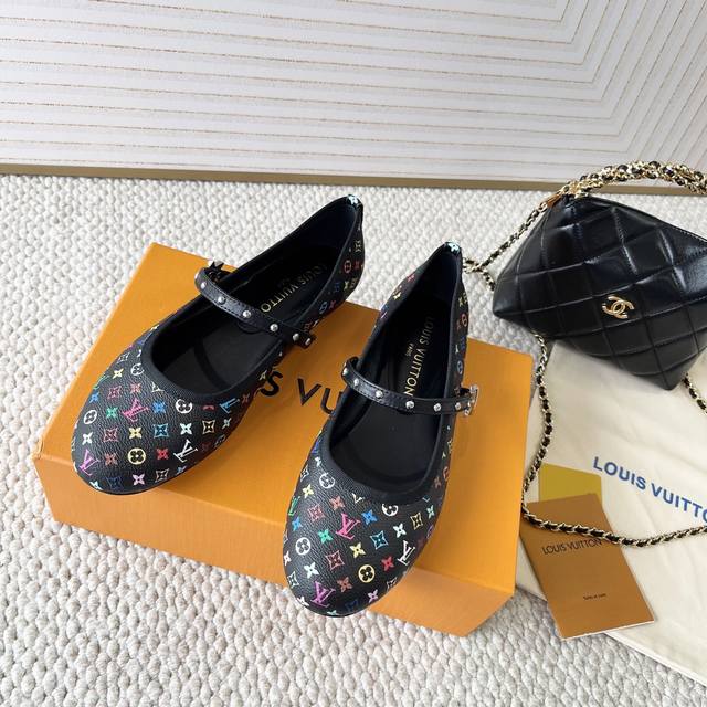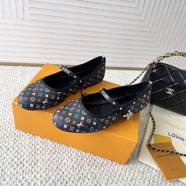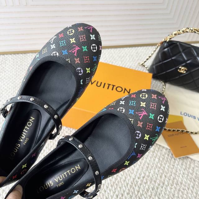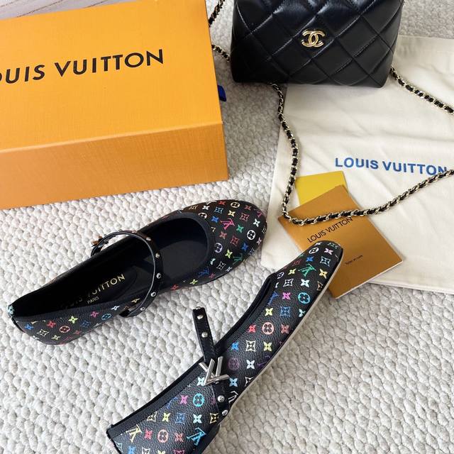 loui* Vuitto* | L驴牌2024年新款 村上隆白三彩系列 芭蕾舞平底鞋单鞋 金属字母扣圆头女鞋