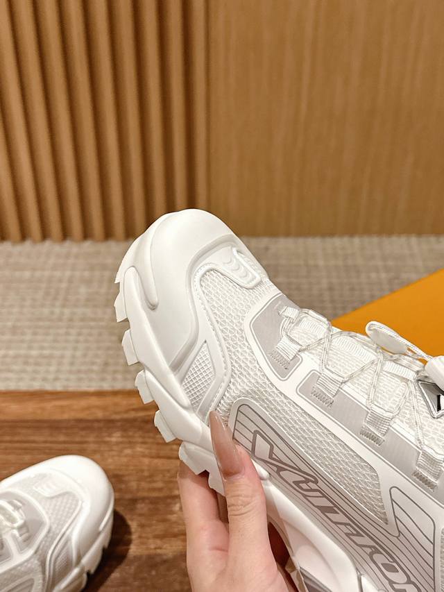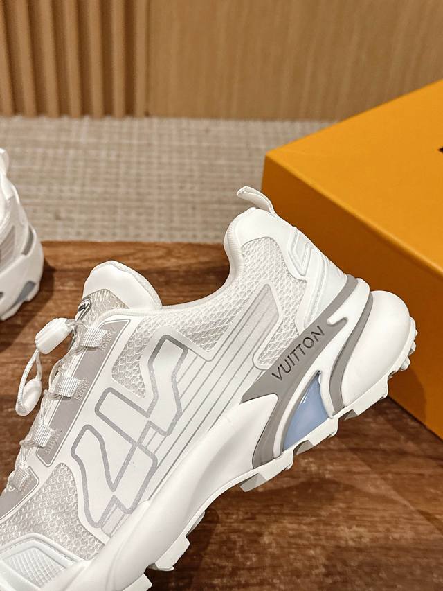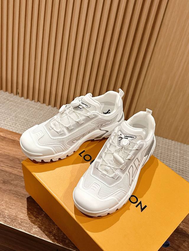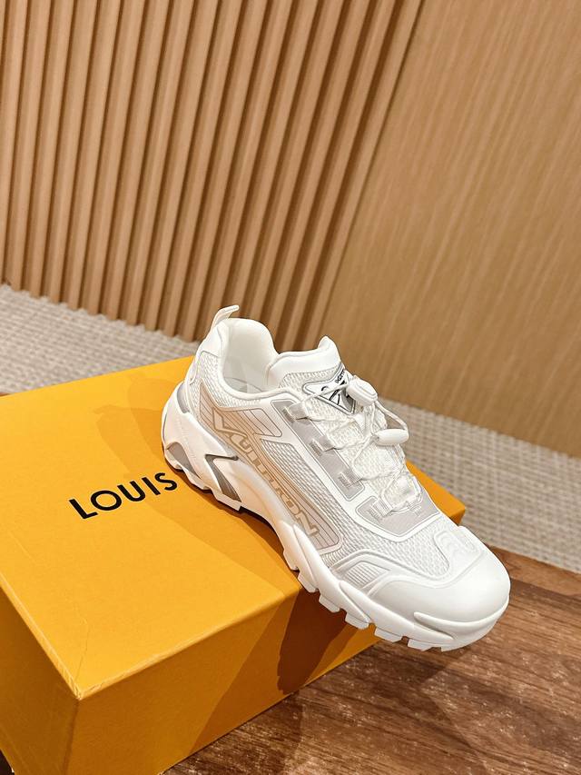 lv 字母抒写于一侧,快速系带系统的套索扣点缀 Monogram 花卉和路易威登标识,轻盈耐磨的橡胶外底完善整体 牛皮拼接网面 透气网里 4Cm Size:39-44(38/45/46定做不退换)