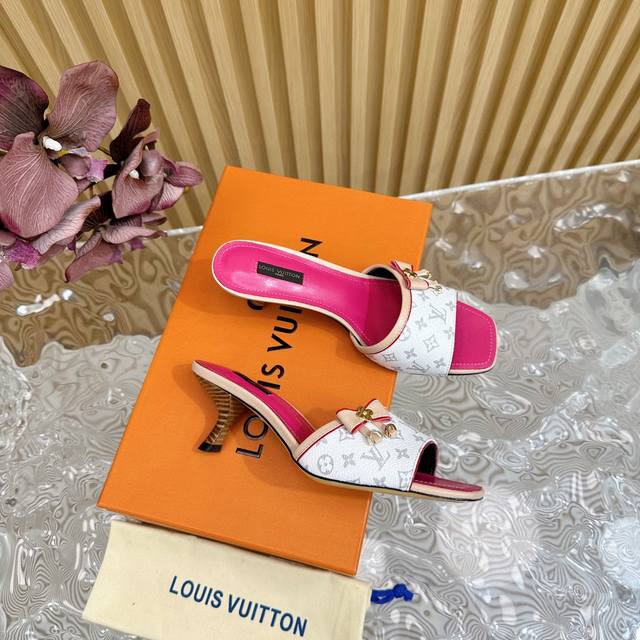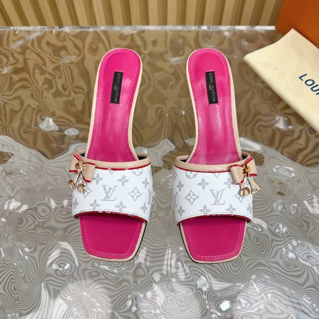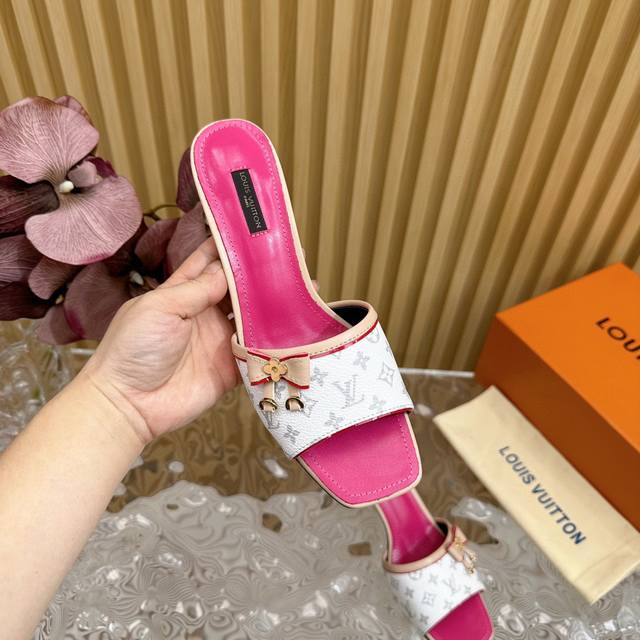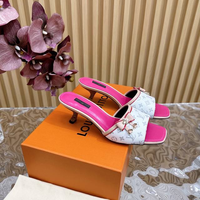 L驴牌 中古风蝴蝶结小猫跟凉拖鞋 鞋面:老花革 垫脚:羊皮 真皮大底 跟高:6Cm 码数:35-39 40 41 42定做不退不换