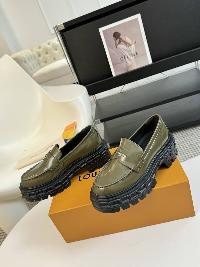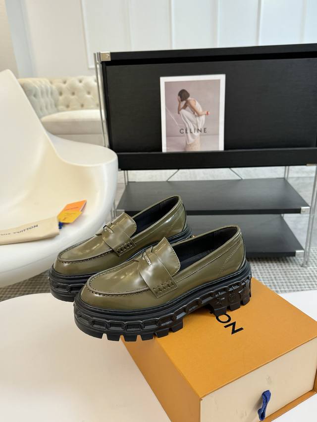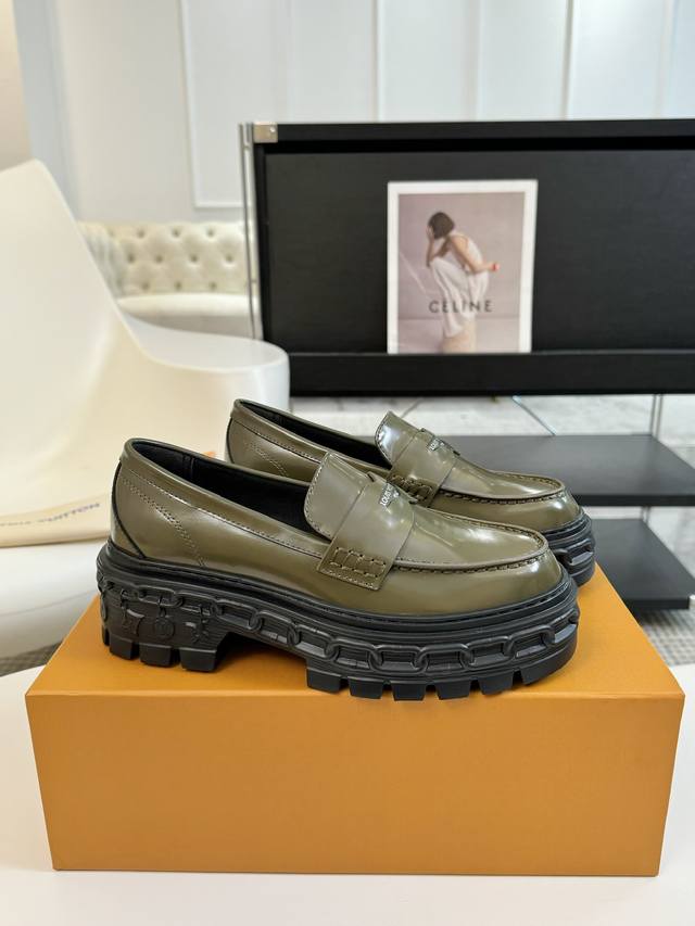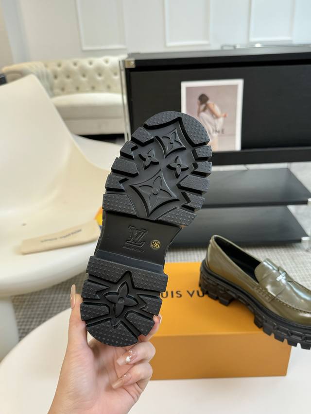 Loui* Vuitto* L驴牌2024年新款 链条浮雕设计风厚底乐福鞋 跟高:5.5Cm 码数 35-39订做34.40
