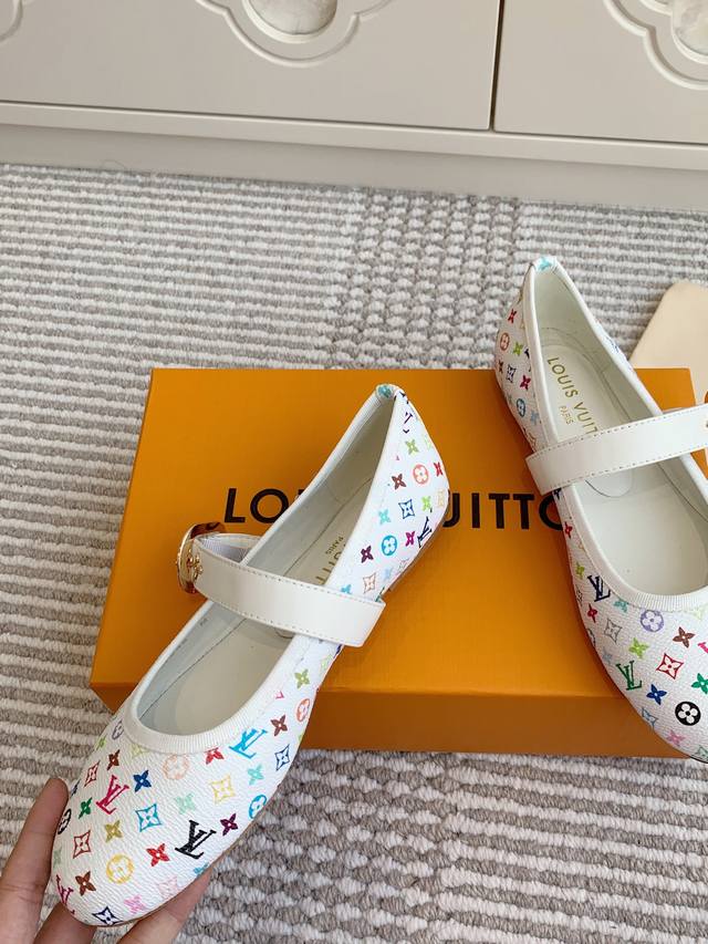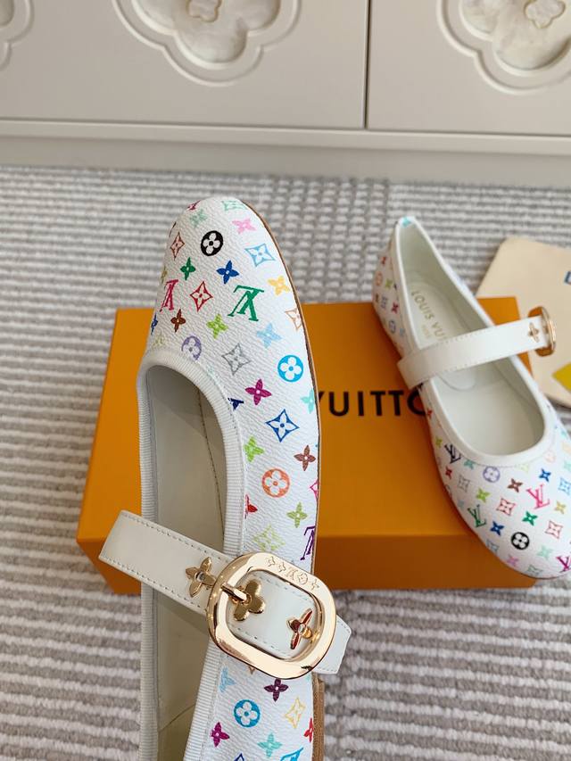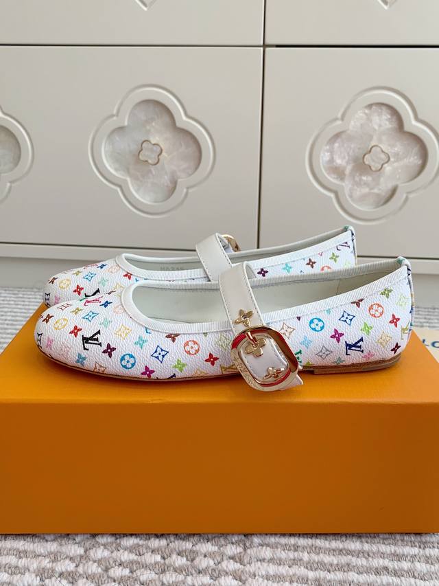 Louis L驴家Tm Romy村上隆联名款黑白三彩 玛丽珍芭蕾舞平底单鞋