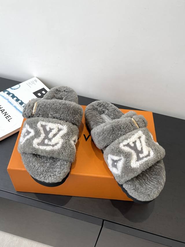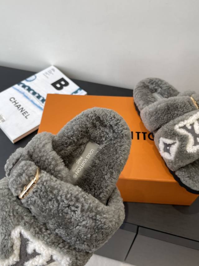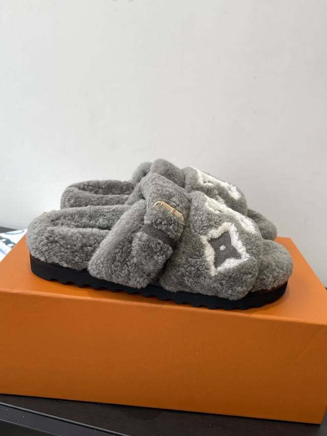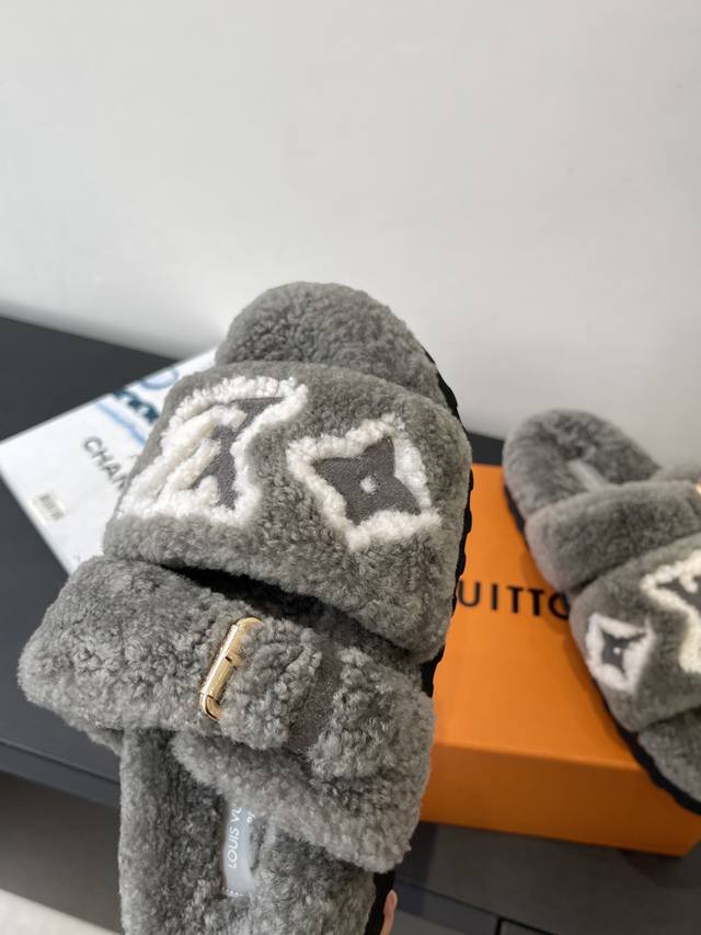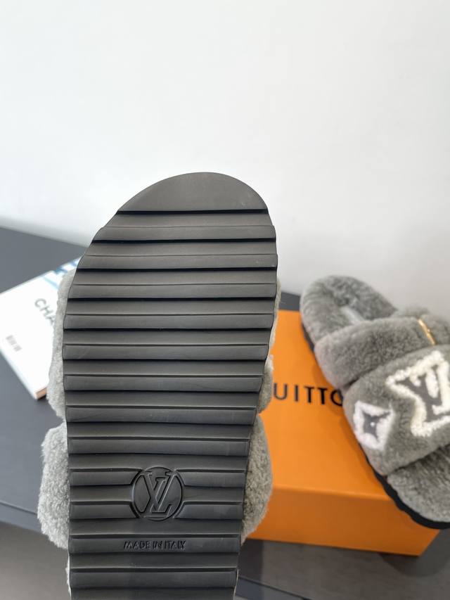 頂级品质 纯皮毛一体羔羊毛打造 超温暖的感觉 穿上仿佛踩在云朵上 Lv经典老花装饰 精致高级 鞋底是原版开模的防滑橡胶大底 非常好穿不打滑 而且鞋底有一定厚度 舒适度极佳码数:35-41 41定做不退换