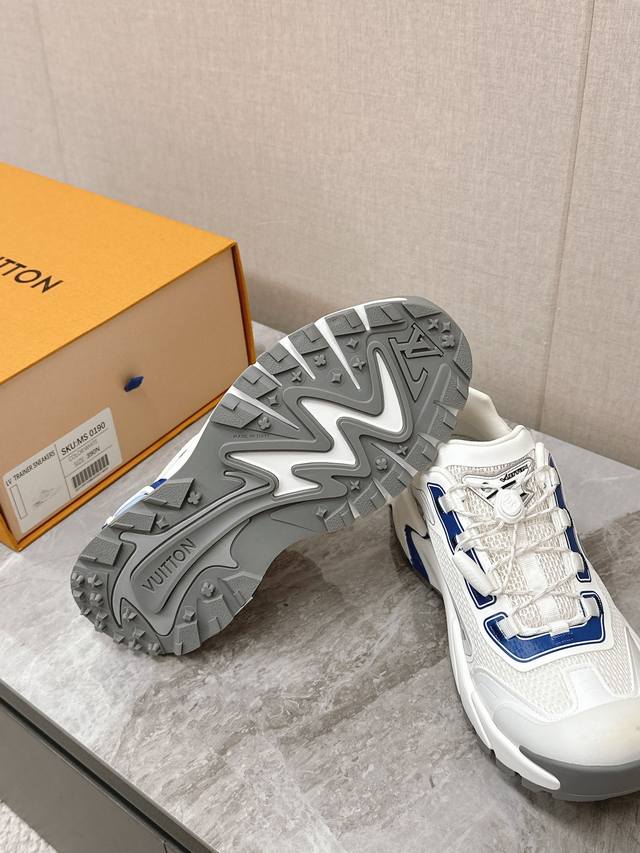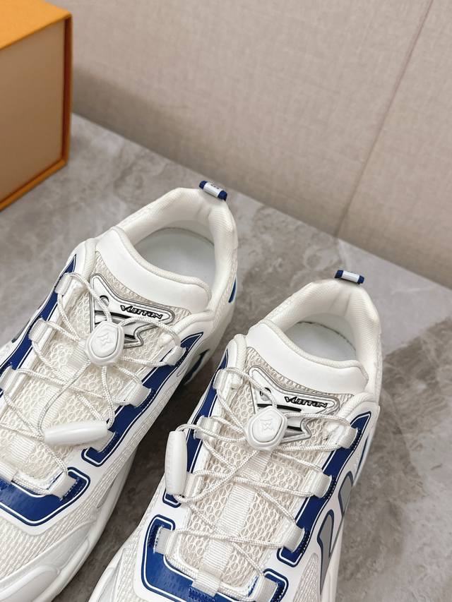 超多明星时尚博主种草 Lv运动鞋以摩登笔触焕新设计 为镜面牛皮革拼接透气网布滴胶工艺描绘出图案复古又有时尚感 厚实而轻盈的橡胶组合外底实现舒适体验 独特的设计 极具辨识度的Logo点缀无不彰显品牌调性 原版私模组合大底