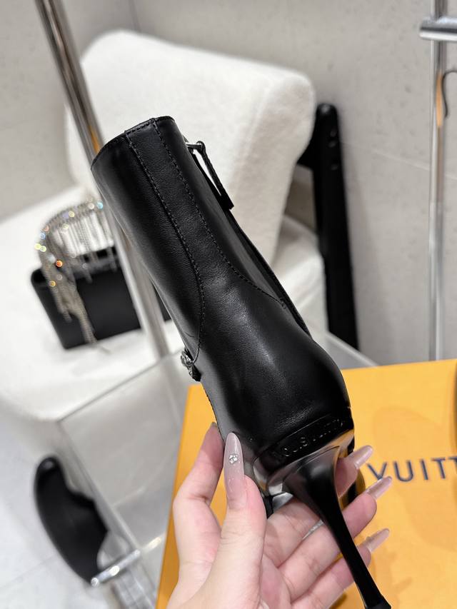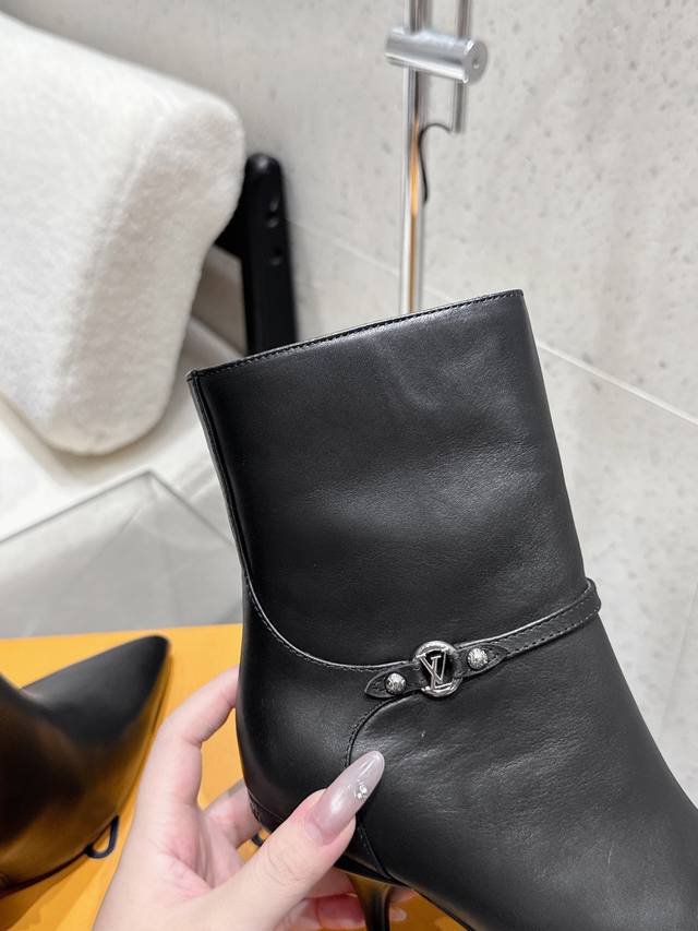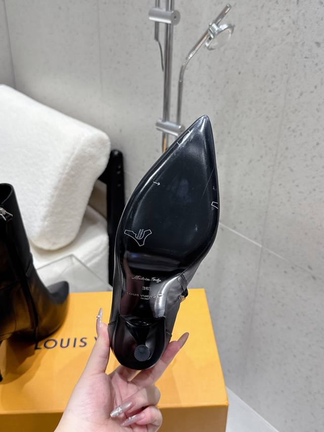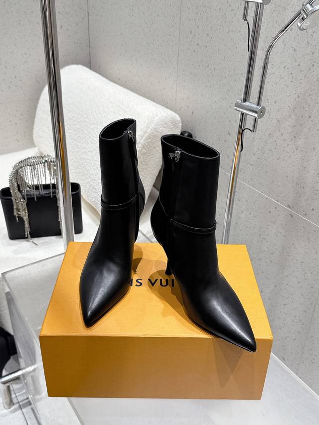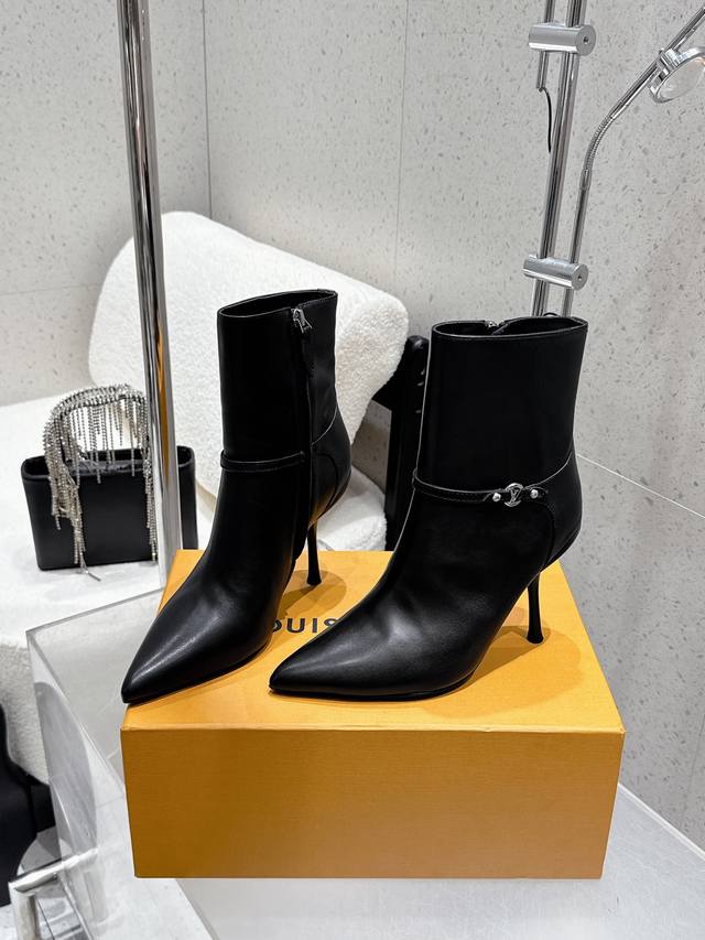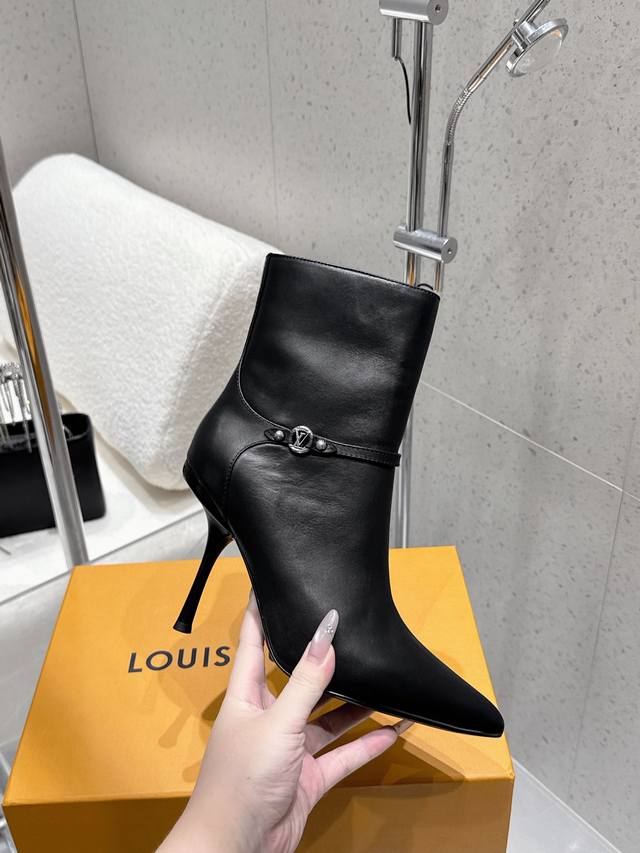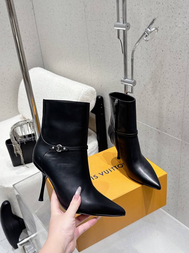 Louis Vuitton 25Ss秋冬新款 Lv尖头高跟侧拉链短靴 裸靴