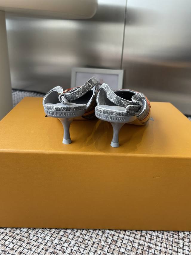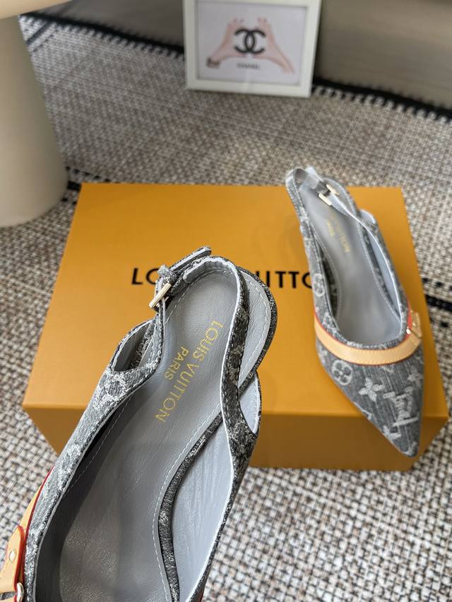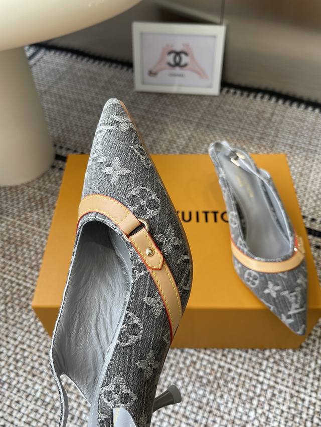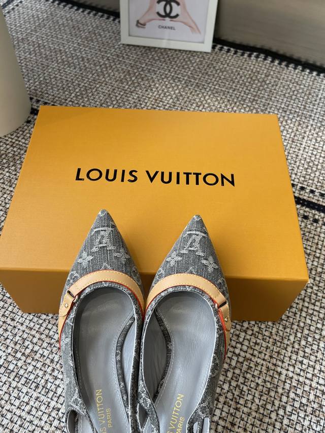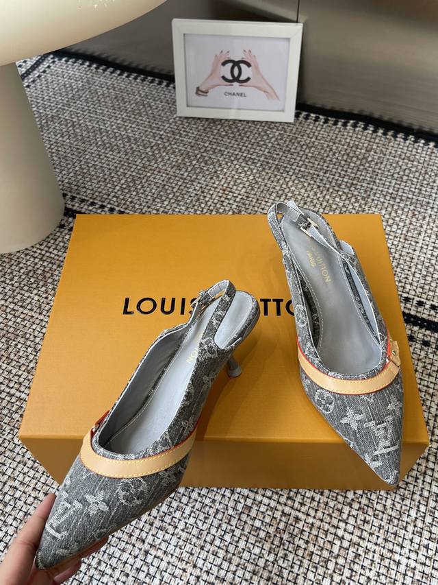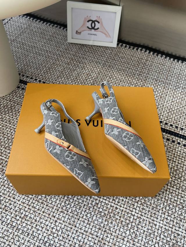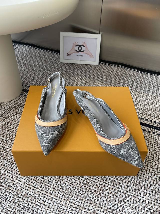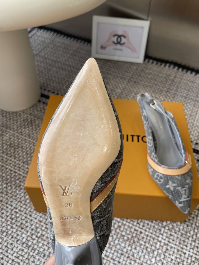 Louisvuitto* 25Ss春夏新款 丹宁牛仔布小猫跟凉鞋