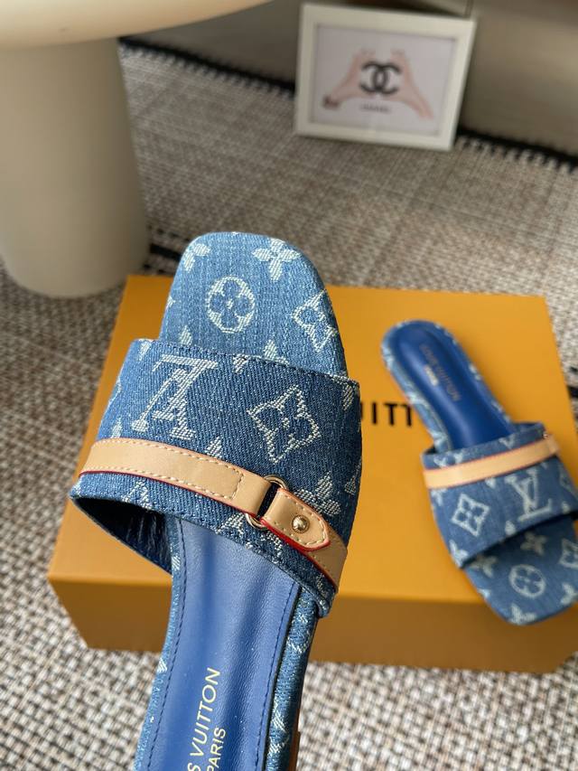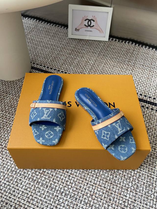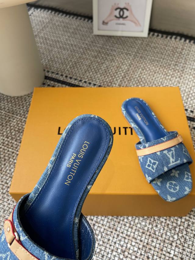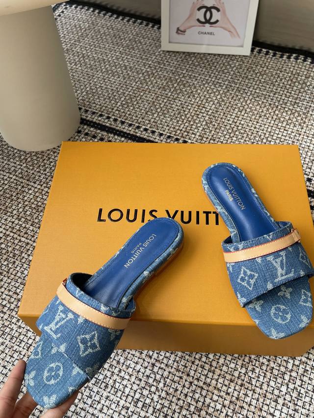 Louisvuitto* 25Ss春夏新款 黑白三彩猫跟平底凉拖