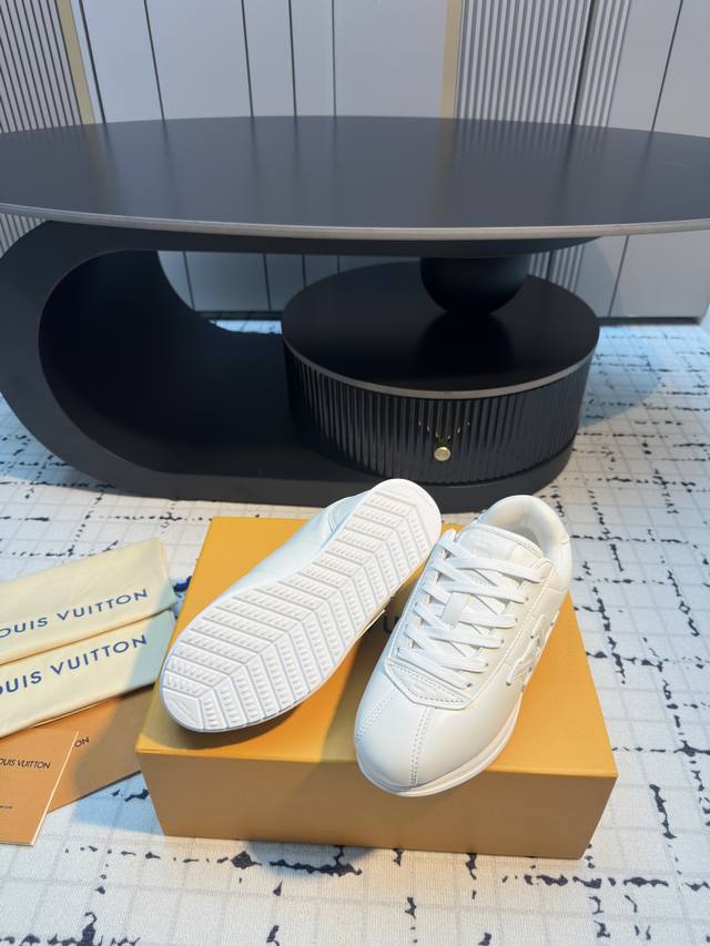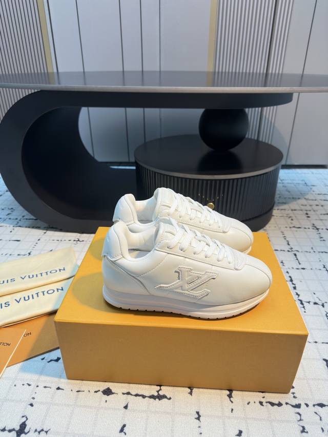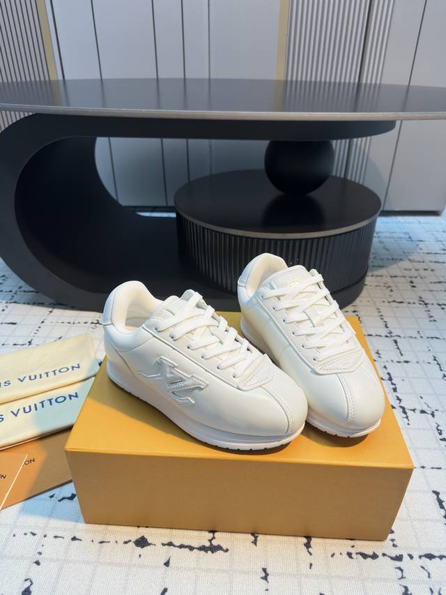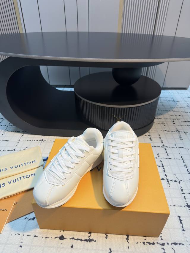 此次系列包括从简约风格的运动鞋到引人注目的跑鞋。Lv以其标志性的厚底和现代美学脱颖而出,而其他款式则采用了奢华的麂皮、皮革和帆布等材质。一些运动鞋设计富有未来感,强调功能性与舒适性,并向运动风格的奢华鞋履迈进