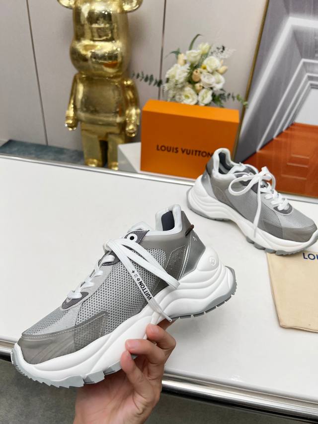 Lv路易威登run 55 运动鞋拼合网格面料、橡胶和粘胶等科技材质,搭配牛皮革材质,共同洋溢运动格调 Monogram 帆布后袢带等标志性元素传递品牌意趣 35--40 41订做