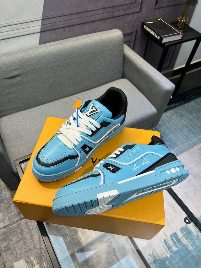 lv顶级版本 新款 代购品质lv~路易威登lv Trainer最好看的运动鞋,驴牌力推新品,官网限定款复古篮球运动鞋!高帮低帮均花血本购入原版1:1精准复刻、细
