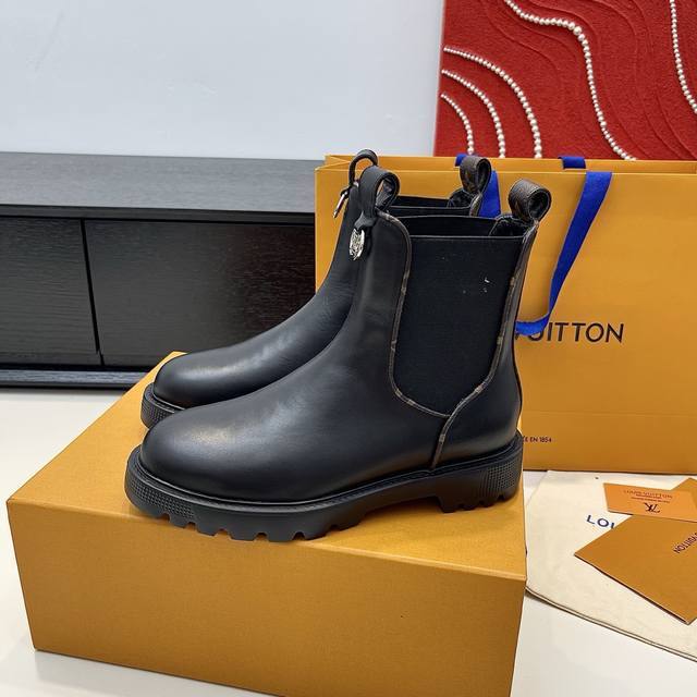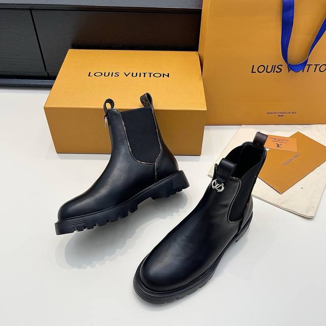Lv驴牌新款 切尔西短靴子 松紧套脚靴 牛皮面 原版大底 正码:35-39订做40.41