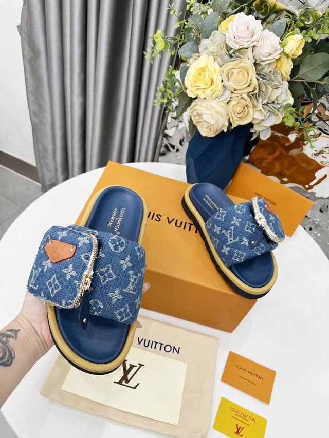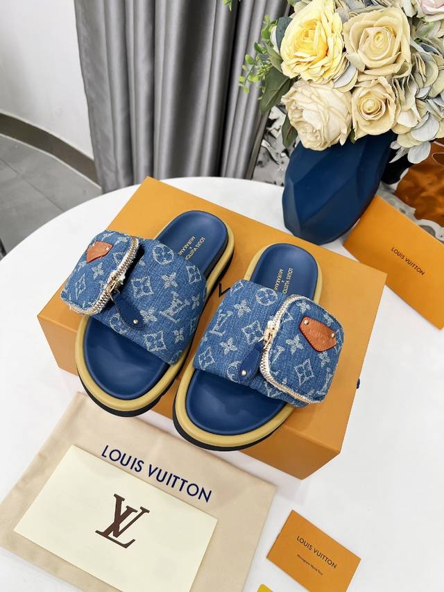 2024春款 顶级版本Lv坡跟麻绳编辑凉鞋 金典优美 美腿神器 男神收割机 面料牛皮加牛仔布,内里垫脚羊皮 ,坡跟高约 13 厘米,带...