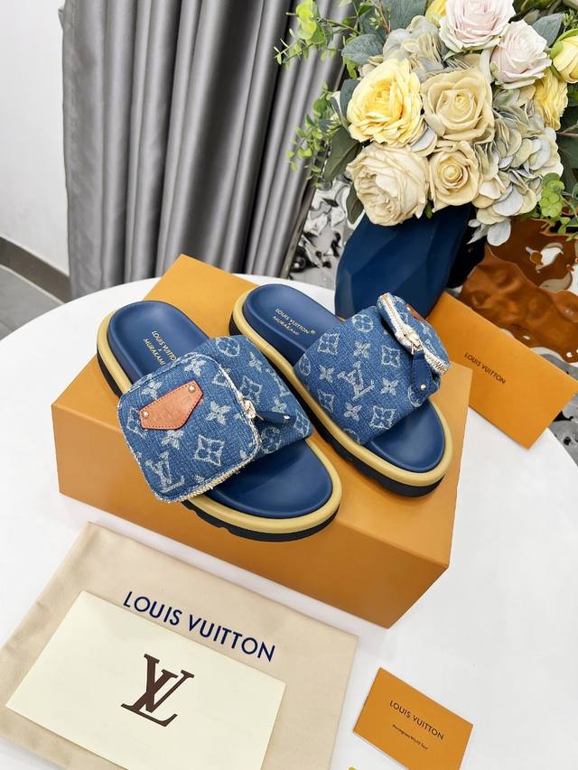 / Lv驴牌l家 爆款 浮雕logo 压花 凉拖鞋 本款 Pool Pillow Comfort 平底凉拖取材科技织物,以高频压印技术重绎 Monogram 图案