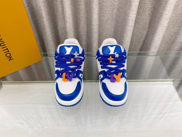 Lv 情侣款 新款trainer Diy饰扣运动鞋板鞋 可爱胖trainer,来闭着眼睛买的款式,打破颜色的单一变化,更年轻了胖trainer也可以叫发福鞋,憨