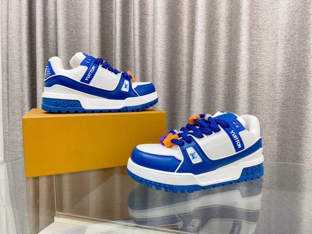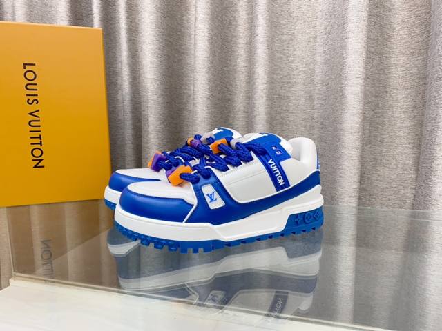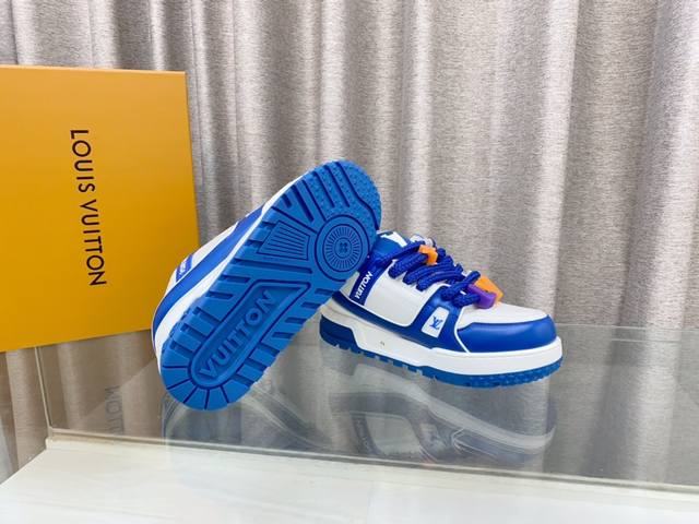 Lv 情侣款 新款trainer Diy饰扣运动鞋板鞋 可爱胖trainer,来闭着眼睛买的款式,打破颜色的单一变化,更年轻了胖trainer也可以叫发福鞋,憨态可掬,可可爱爱最经典的胖子鞋型,最经典的配色, 高端大气上档次 每个款式配色都很赞!原版开模可爱饰扣,原版完全一样材质做工细节 各种皮面tpu 布 超复杂拼接tpu原版大底,原版包装