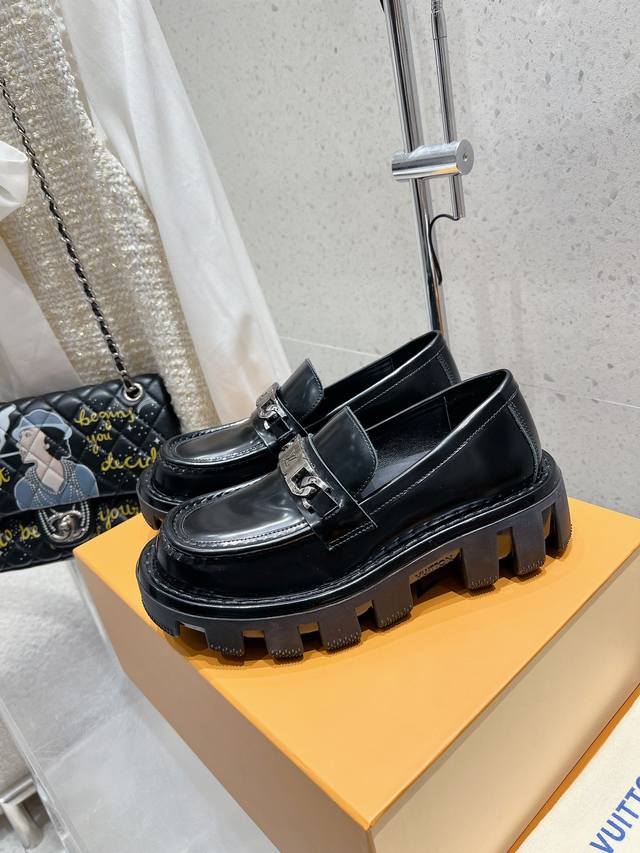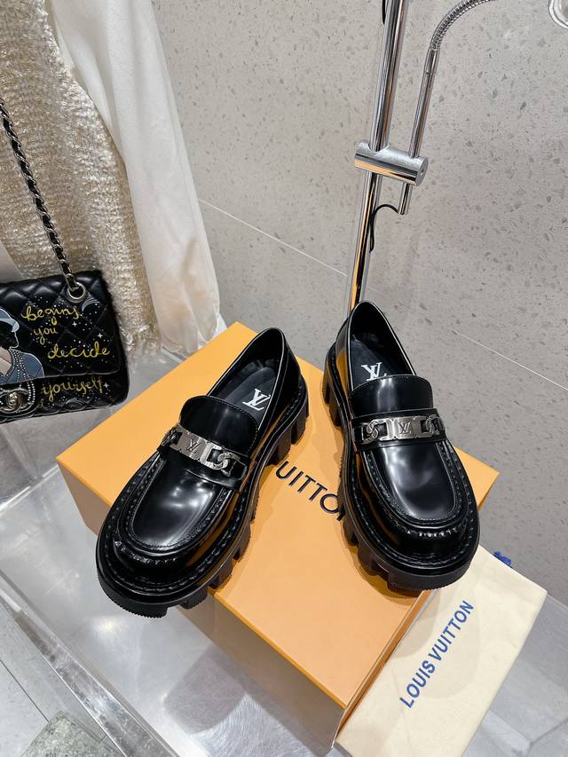 Lv 秋冬新款链条浮雕厚底乐福鞋