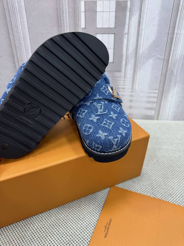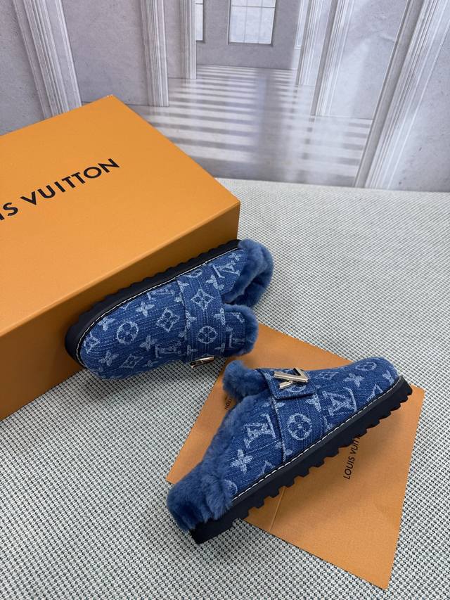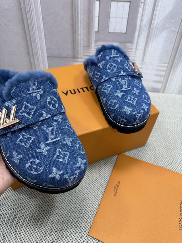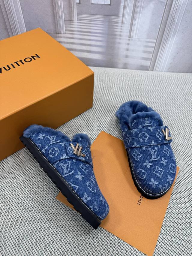 / Lv 路易威登 早春新品 顶级版本 专柜主打最新款 拖鞋 猫跟拖鞋 硬货上新 鞋面:牛皮 粒面牛皮 牛仔布 内里:进口山羊皮里 跟高:平底 鞋码: 35-45