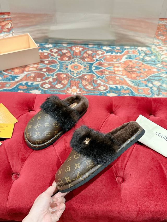 Lv 路易威登 24 秋冬新款 顶级版本专柜主打最新款 包头穆勒毛毛拖鞋硬货上新代购级别!高级感十足!国内外博主刷爆的一款,复古又时髦 上脚美炸了!官网主推款★
