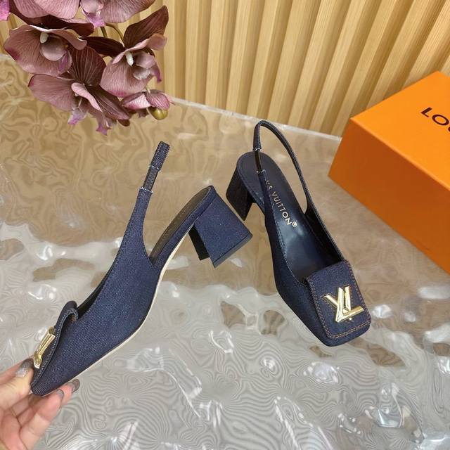Lv 路易威登 25 2025 早春新品 顶级版本专柜主打最新款 拖鞋 猫跟拖鞋 硬货上新 Dd鞋面:牛仔布内里:进口山羊皮里大底:真皮大底1011鞋码: 35