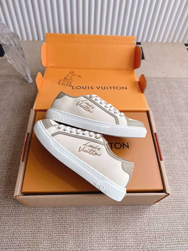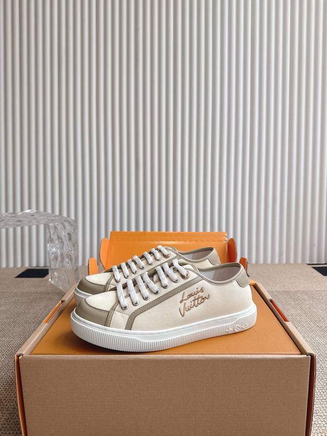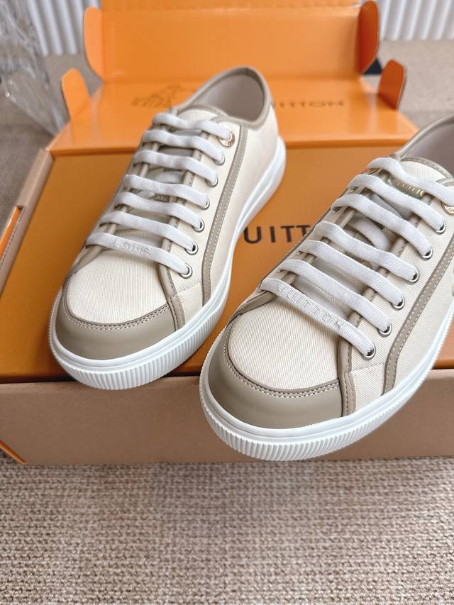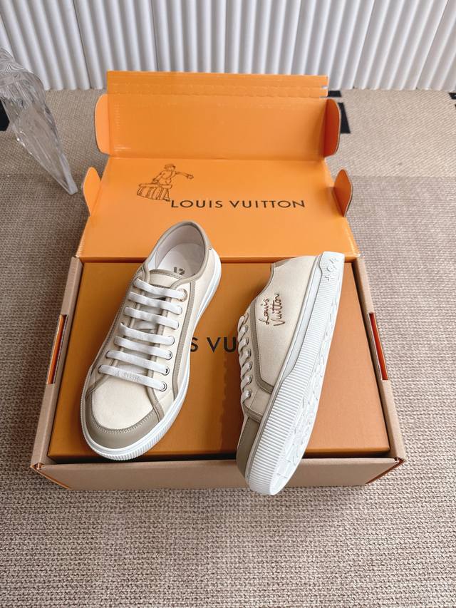 Lv Lagoon 运动鞋取材 Monogram 丹宁布,为经典设计注入复古气息。皮革饰边跃现路易威登标识,铭纹孔眼、镶边和鞋带彰显考究细节,点缀 Monogram 花卉的橡胶外底完善整体。