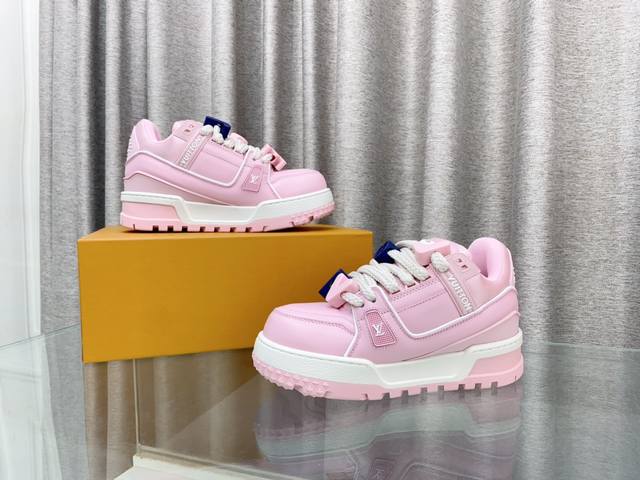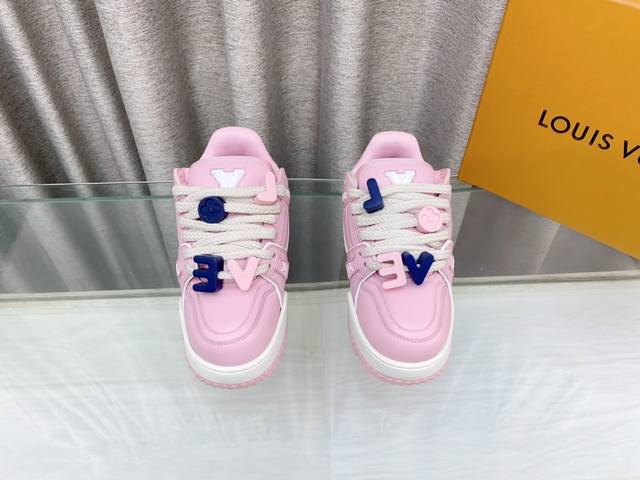 Lv #限女款 新款trainer Diy饰扣运动鞋板鞋 可爱胖trainer,来闭着眼睛买的款式,打破颜色的单一变化,更年轻了胖trainer也可以叫发福鞋,