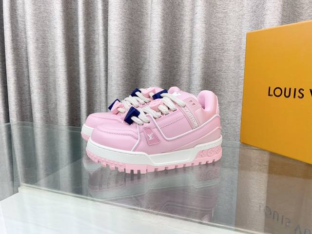/ Lv #限女款 新款trainer Diy饰扣运动鞋板鞋 可爱胖trainer,来闭着眼睛买的款式,打破颜色的单一变化,更年轻了胖trainer也可以叫发福鞋,