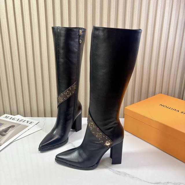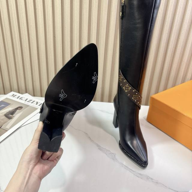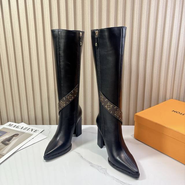 Lv 驴家尖头长靴 。 奢华大气,简约时尚。干净利落的款式,职场造型必入单品。鞋身整体线条流畅,拉伸腿型