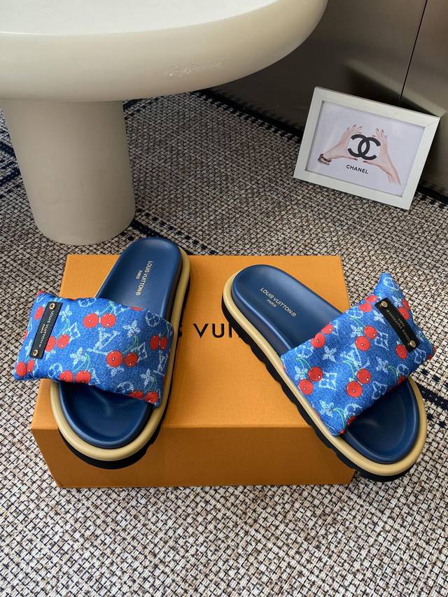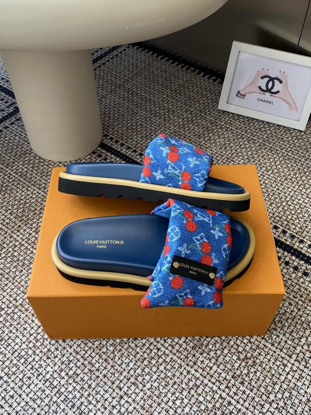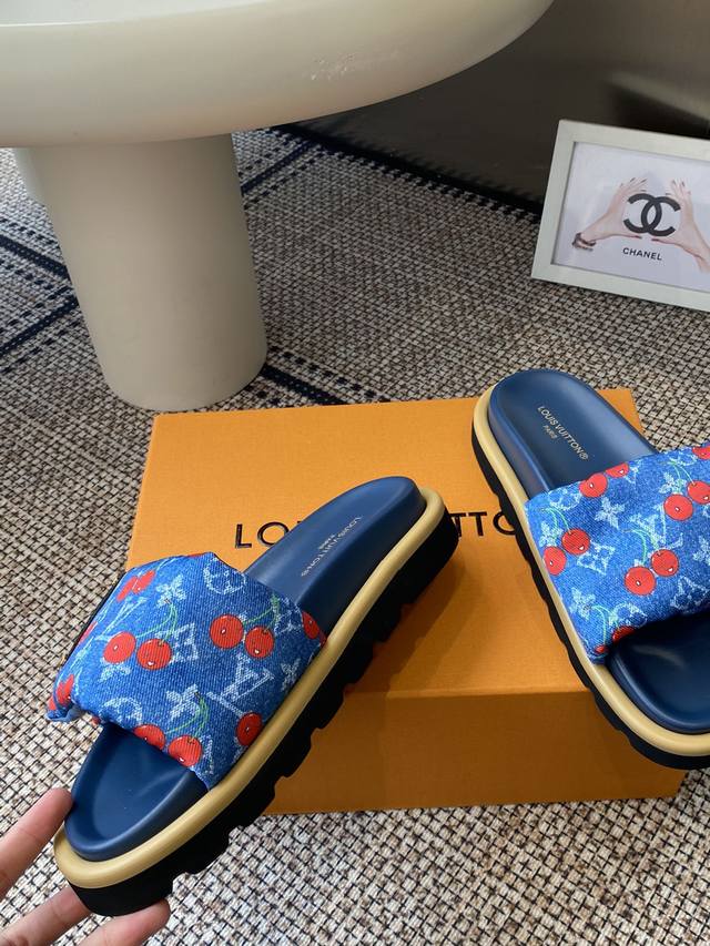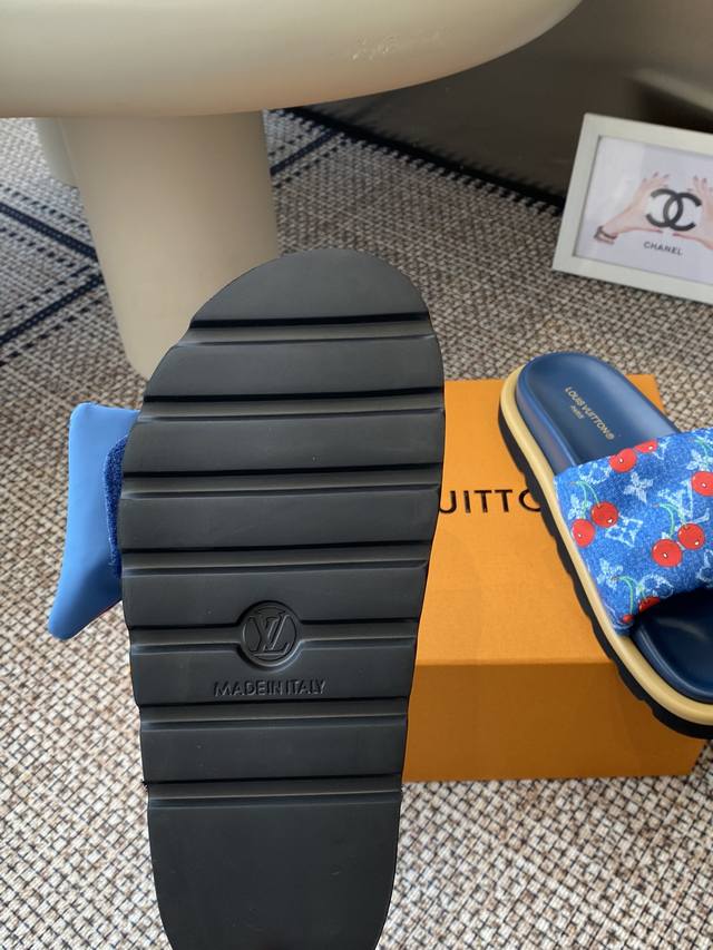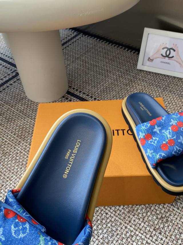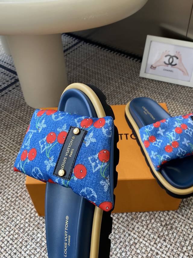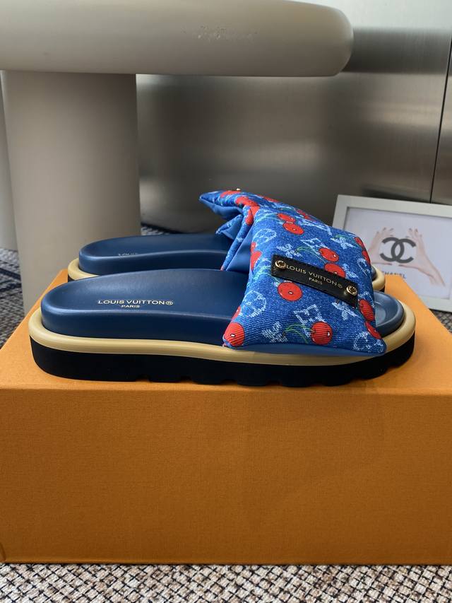 Lv 2025Ss樱桃系列 魔术贴情侣款面包拖鞋 原版开发 顶级版本 所有细节都和正品一致!