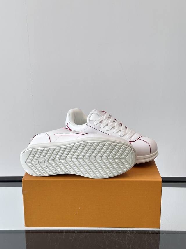 Ouis *Uitto* 新品男士运动鞋的多彩诠释结合了羊皮、Lv Buttersoft运动鞋的多彩诠释结合了羊皮和小牛皮,带来超柔软的感觉。这款以60年代为灵感的鞋款由pharrell Williams设计,鞋面有衬垫,由Louis Vuitton工匠精心制作,进一步提高了皮革的舒适度。除了Lv首字母外,它还具有多种签名,包括天然皮革镶边和pharrell Williams侧面的浮雕图案以及龙虾,参考了2025秋冬男装秀。潮人必备神器啊