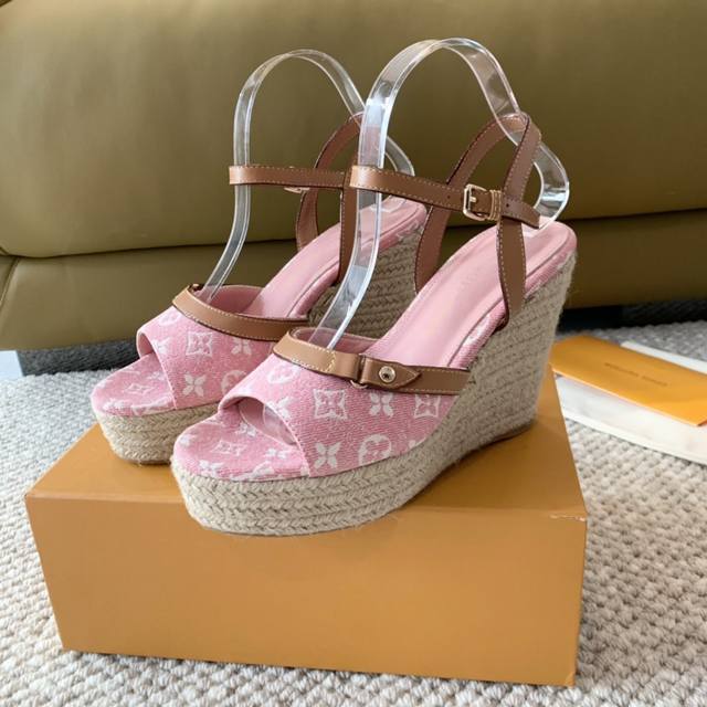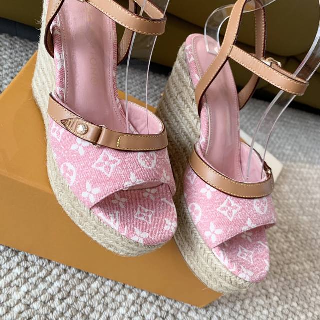/ p480 Louis Vuitto l驴家 2024年新款 厚底麻绳坡跟凉鞋 帆布草编高跟凉鞋 后跟11Cm 和9Cm 前底都是6Cm 正码:35-39订做34