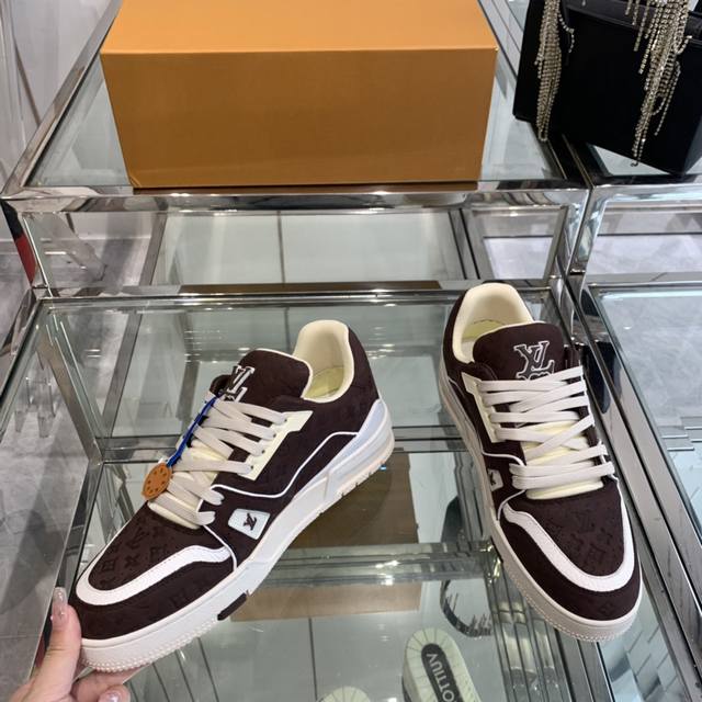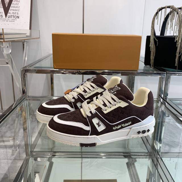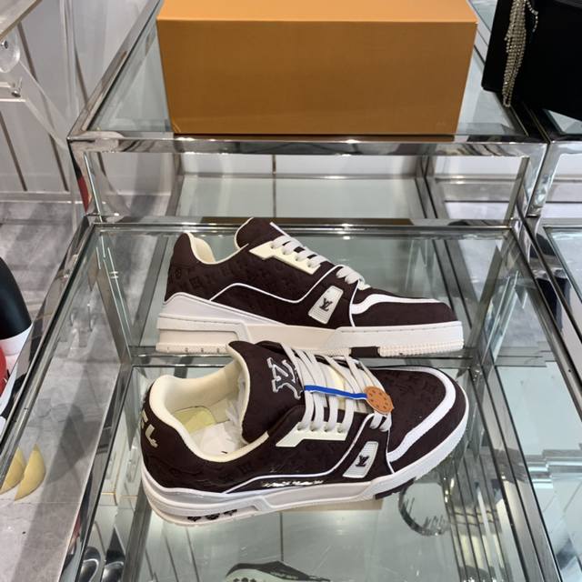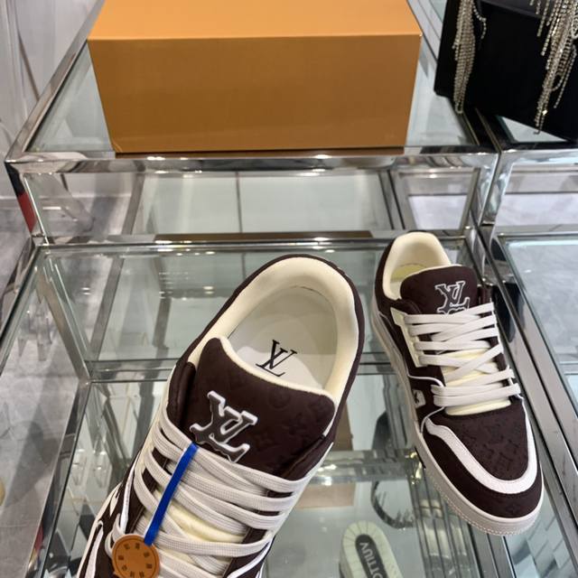 经典压花Lv"Trainer情侣款最新限定系列休闲运动板鞋。超级玩味 超级童趣,疯狂心动