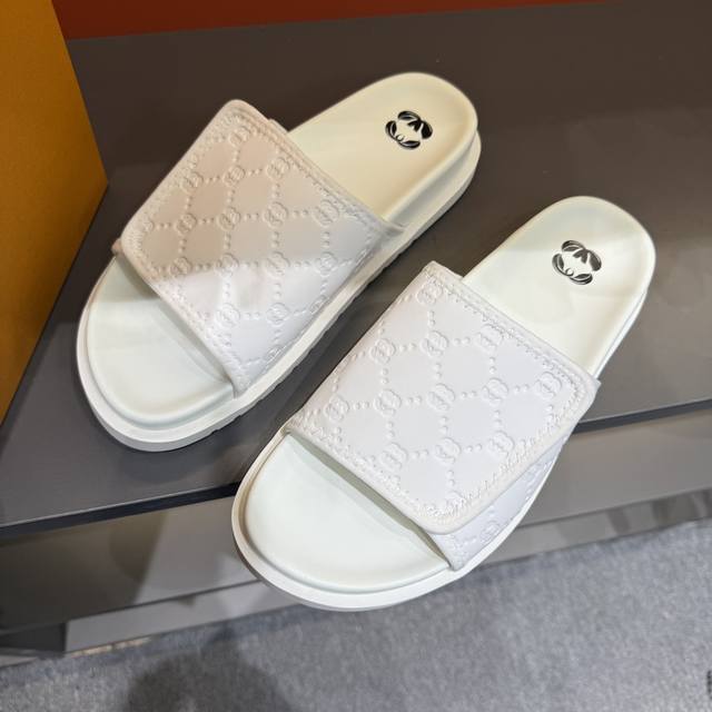 出厂价 实价 路易威登拖鞋-自主品牌GUVI 高端男士夏季拖鞋, 经典老花系列,一字带宽松设计,别致的色彩拼接效果,个性鲜明,时尚潮流穿搭必备款式,轻盈舒适。轻
