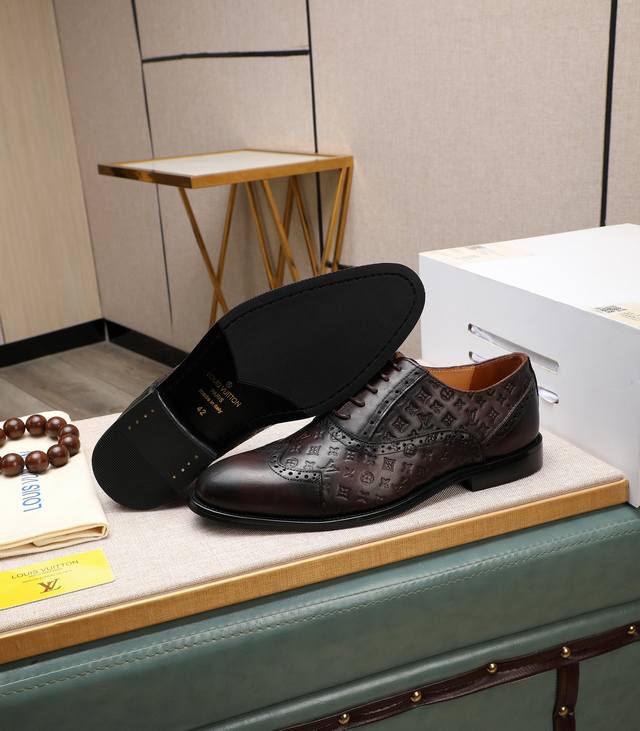 出厂价 水染牛里 Louis Vuitton* 高端 路易威登 2024年专柜最新款 正装商务皮鞋原版最高品质!进口意大利小牛皮面料牛皮内里 原版大底 正装码数:3844