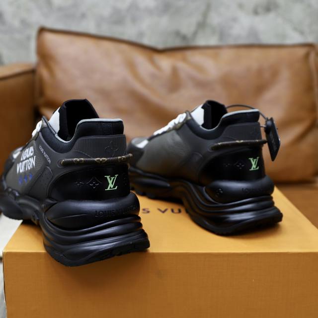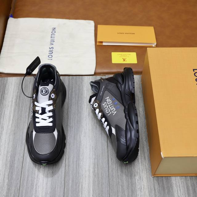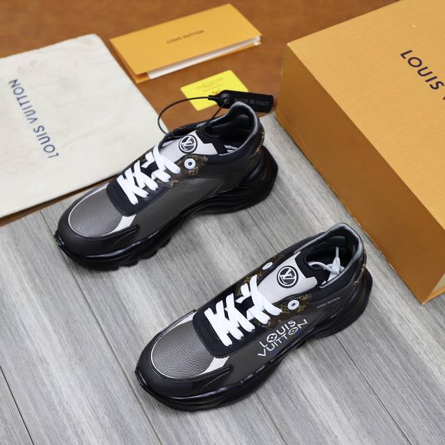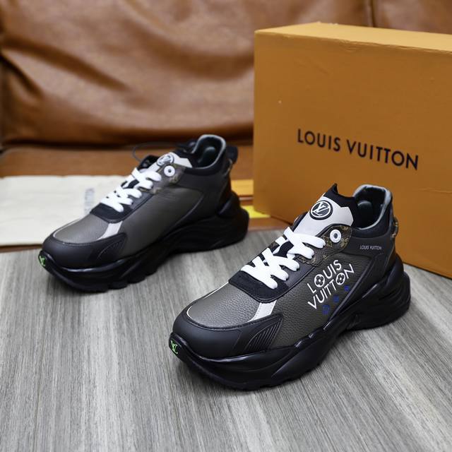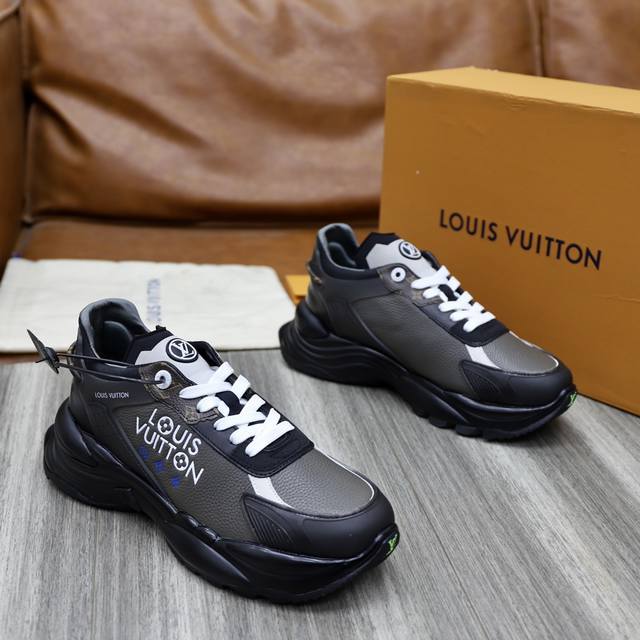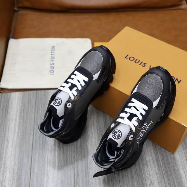 / 出厂价: L. V 男士增高运动鞋,巨显高,秒变大长腿,脚感非常舒适,取材 Monogram 丹宁布,原版材质拼接,以鲜明设计彰显跑鞋的灵感启发。几何鞋舌洋溢未