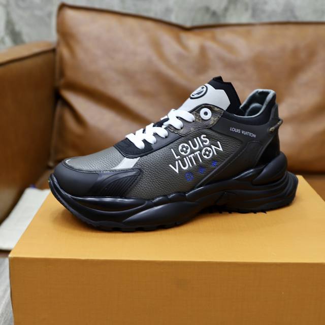 出厂价: L. V 男士增高运动鞋,巨显高,秒变大长腿,脚感非常舒适,取材 Monogram 丹宁布,原版材质拼接,以鲜明设计彰显跑鞋的灵感启发。几何鞋舌洋溢未
