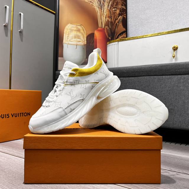 出厂价 Lv新款休闲运动鞋 时尚大方百搭, 版型简洁大气, 面料采用进口牛皮配原版材料,透气网布内里,原版耐磨橡胶大底,独家新款,实物拍摄,四色可选,码数:38-44, 45可定做