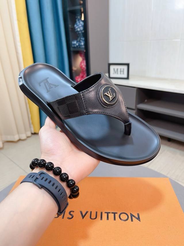 出厂价p Lv-路易威登 新品男士凉拖鞋,高端精品,鞋面精致压花Logo装饰,精细做工,鞋底超软,休闲宽松舒适型,夏季必入哦! Size:38-44