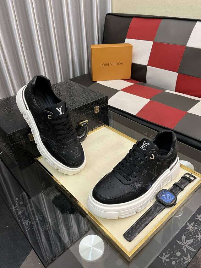 出厂价pp: Loui* Vuitto* 爆款男士休闲鞋 、意大利正版开发代购级别品质鞋面由官网材料头层牛皮制作、舒适柔软的羊皮垫脚 时尚百搭 鞋头楦型挺而饱满