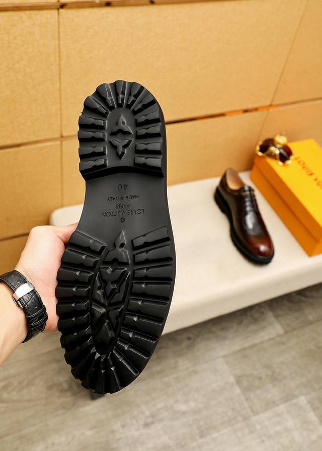 原单 Louis Vuitton 路易威登 新款~时尚商务正装男鞋原单品质,高端精品细节精致考究,采用进口意大利头层开边珠牛皮鞋面舒适的水染牛皮内里,原版大底,穿着舒适工艺精典,做工精细,值得拥有 码数:38-44 45订做