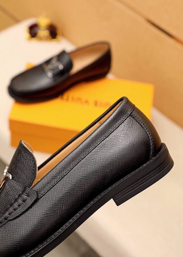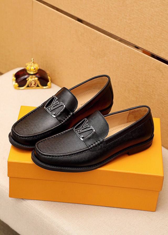 商品商标:Louis Vuitton 路易威登 商务小圆头皮鞋 正码码数: 38-44 45订做不退换 商品材料:精选 黑色石头纹牛皮鞋面 牛皮内里...
