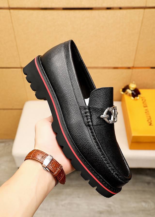 / 商品商标:Louis Vuitton 路易威登 休闲皮鞋 正码码数: 38-44 45.46订制 商品材料:精选 进口头层荔枝纹牛皮鞋面+原版五金扣,进口头层牛
