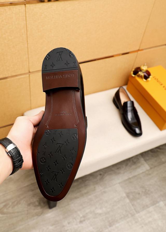 商品商标:Louis Vuitton 路易威登 商务正装套脚皮鞋 正码码数: 38-45 商品材料:精选 荔纹压纹牛皮鞋面 牛皮内里 原版tpu大底
