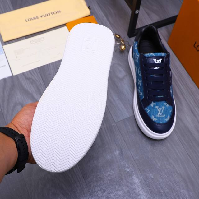 商品商标:LOUIS VUITTON 路易威登 休闲鞋 正码码数: 38-44 45.46订做不退换 商品材料:精选 牛皮拼接牛仔鞋面 羊皮内里 橡胶大底