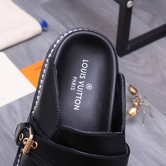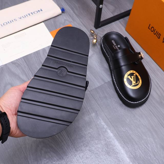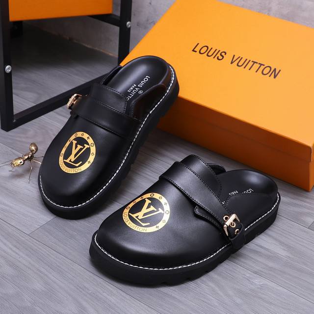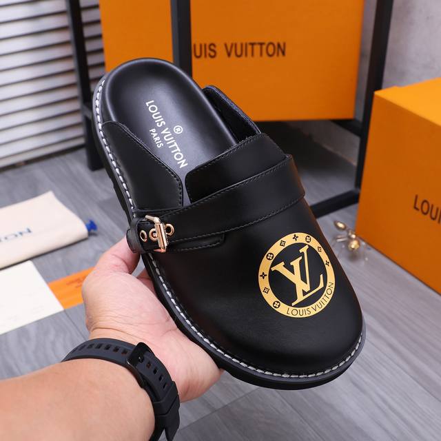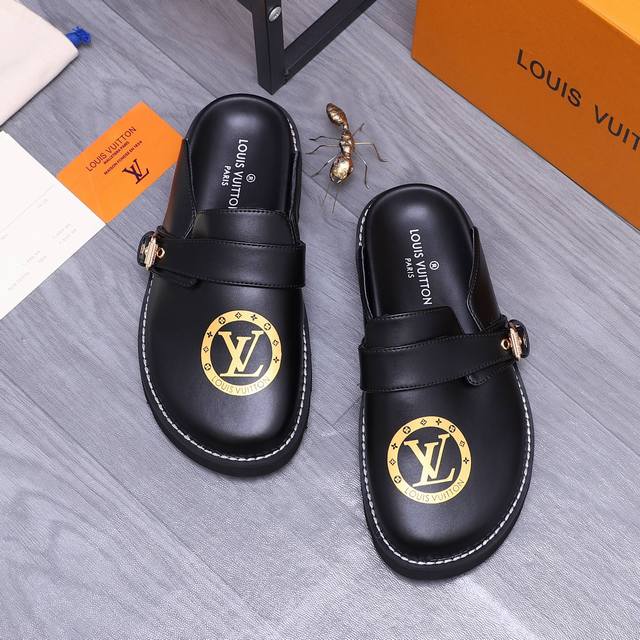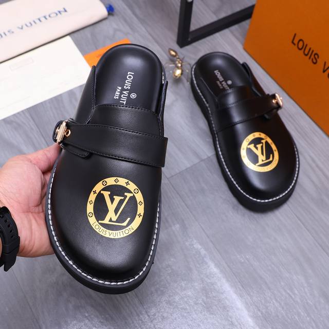 商品商标:Louis Vuitton 路易威登 ] 半拖 拖鞋 正码码数: 38-44 45.46 订做不退换 商品材料:精选牛皮印花鞋面 羊皮内里 橡胶大底